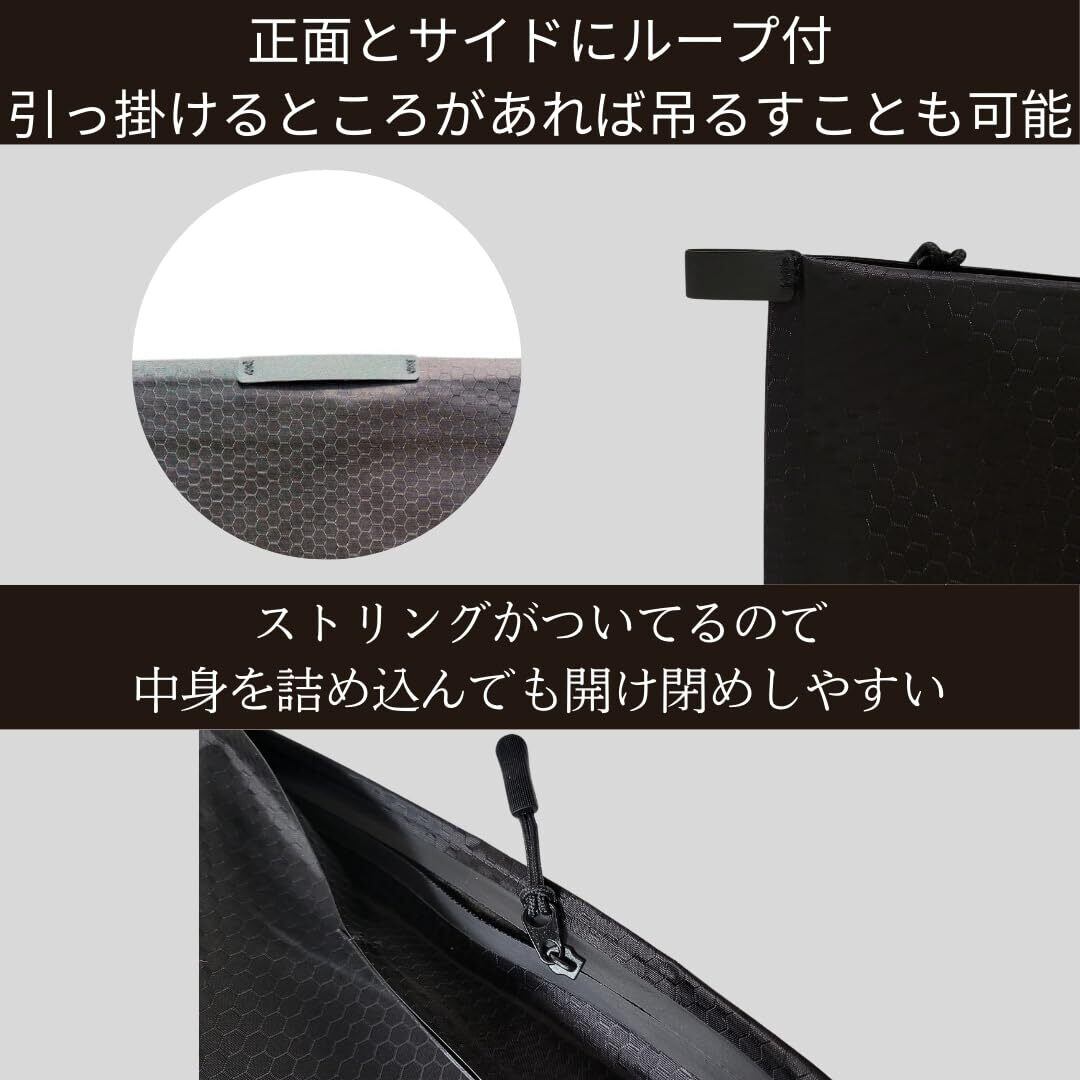 ミニマムデザインでも収納力抜群:ミニマムデザインながら、底にマチがあるので収納力もあるので、洗面バッグとしても活躍できます。外側は30Dのコーデュラ生地で耐久性も高く、沢山詰め込んでも破れるリスクは低いです。