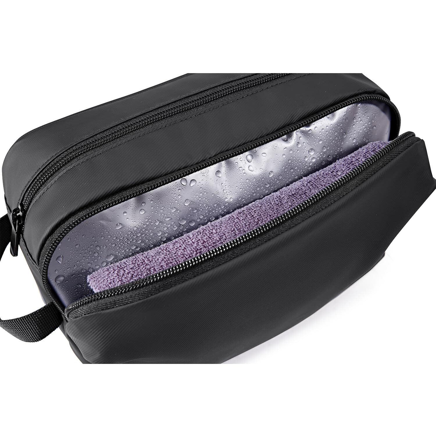 【ポケット付き】トイレタリーバッグの内側にはメッシュポケットが2つあり、物が散らかるのを防ぎ、小物を整理するのに便利です。