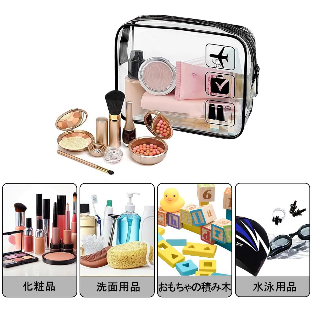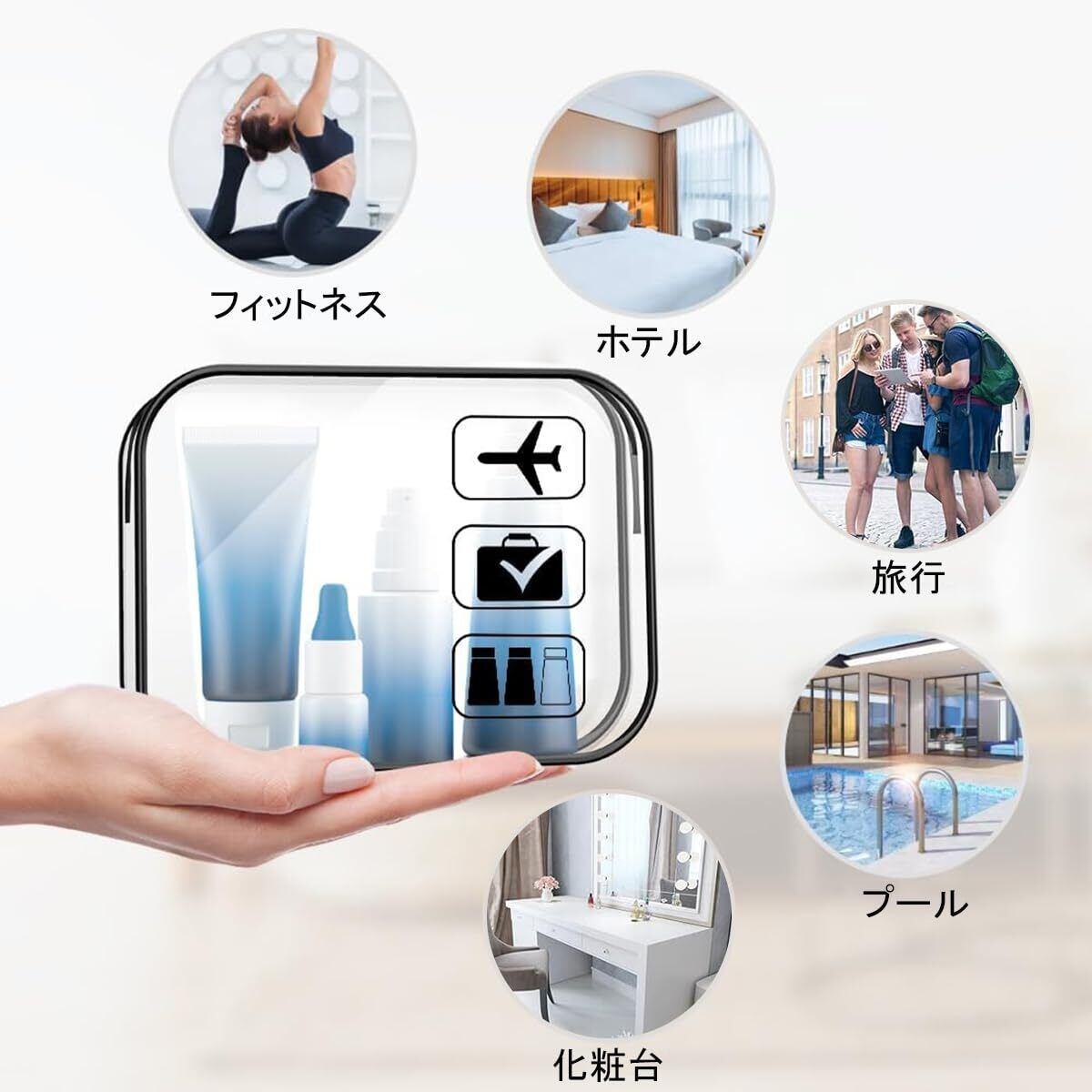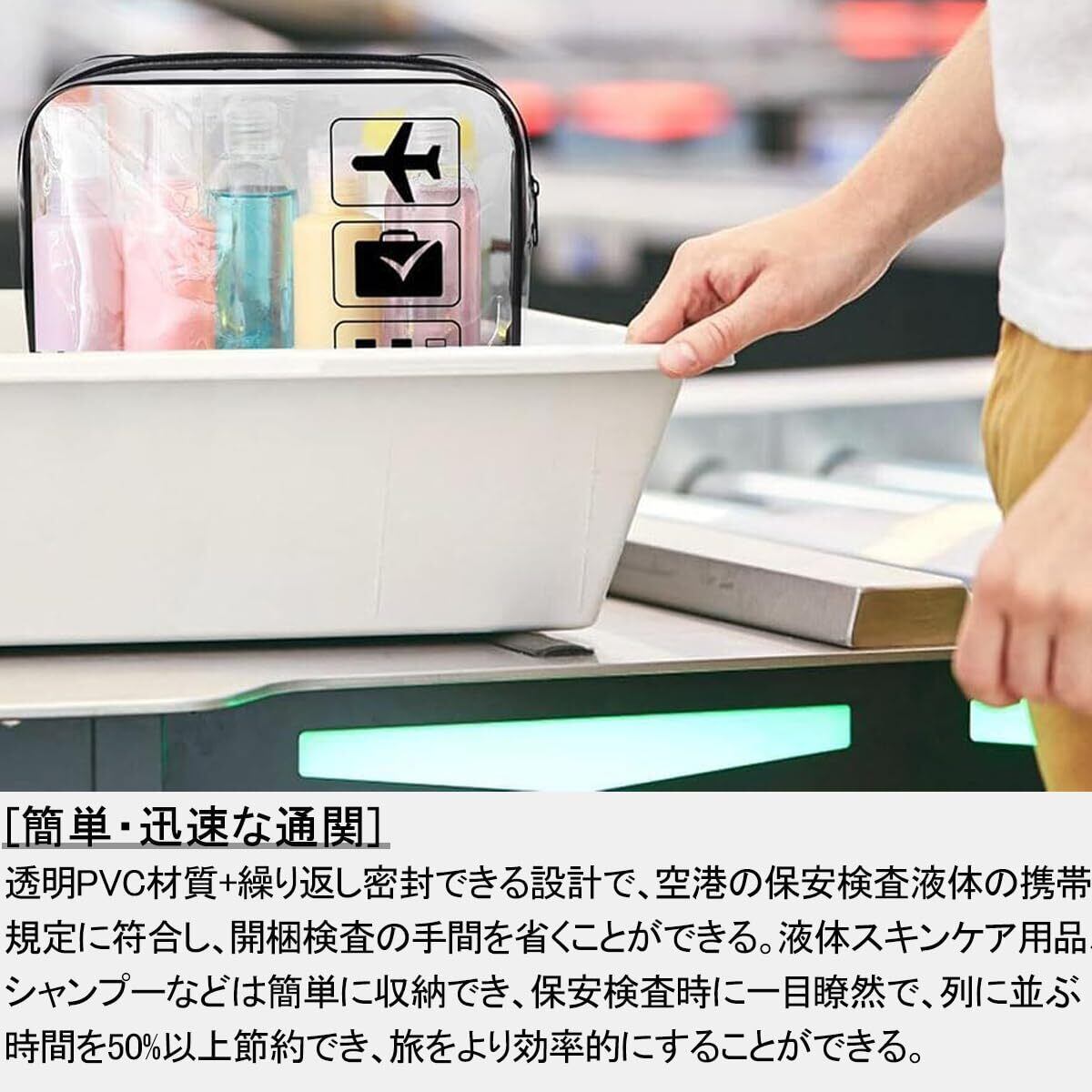 【簡単・迅速な通関】透明PVC材質+繰り返し密封できる設計で、空港の保安検査液体の携帯規定に符合し、開梱検査の手間を省くことができる。液体スキンケア用品、シャンプーなどは簡単に収納でき、保安検査時に一目瞭然で、列に並ぶ時間を50%以上節約でき、旅をより効率的にすることができる。