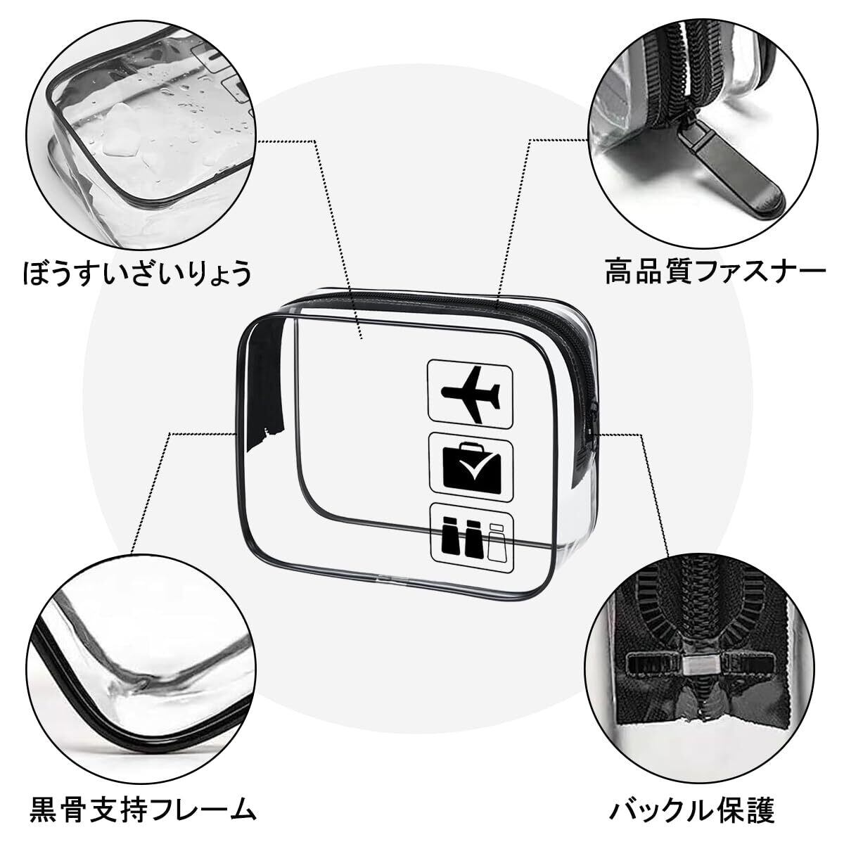 【上質な材質】厚く透明なPVC材質を採用し、引き裂き、水こぼれに強く、空港の揺れや荷物の押し出しも破損しにくい。防水内層は拭くとすぐにきれいになり、液体漏れの気まずいことに別れを告げ、長期使用は依然として新しい。