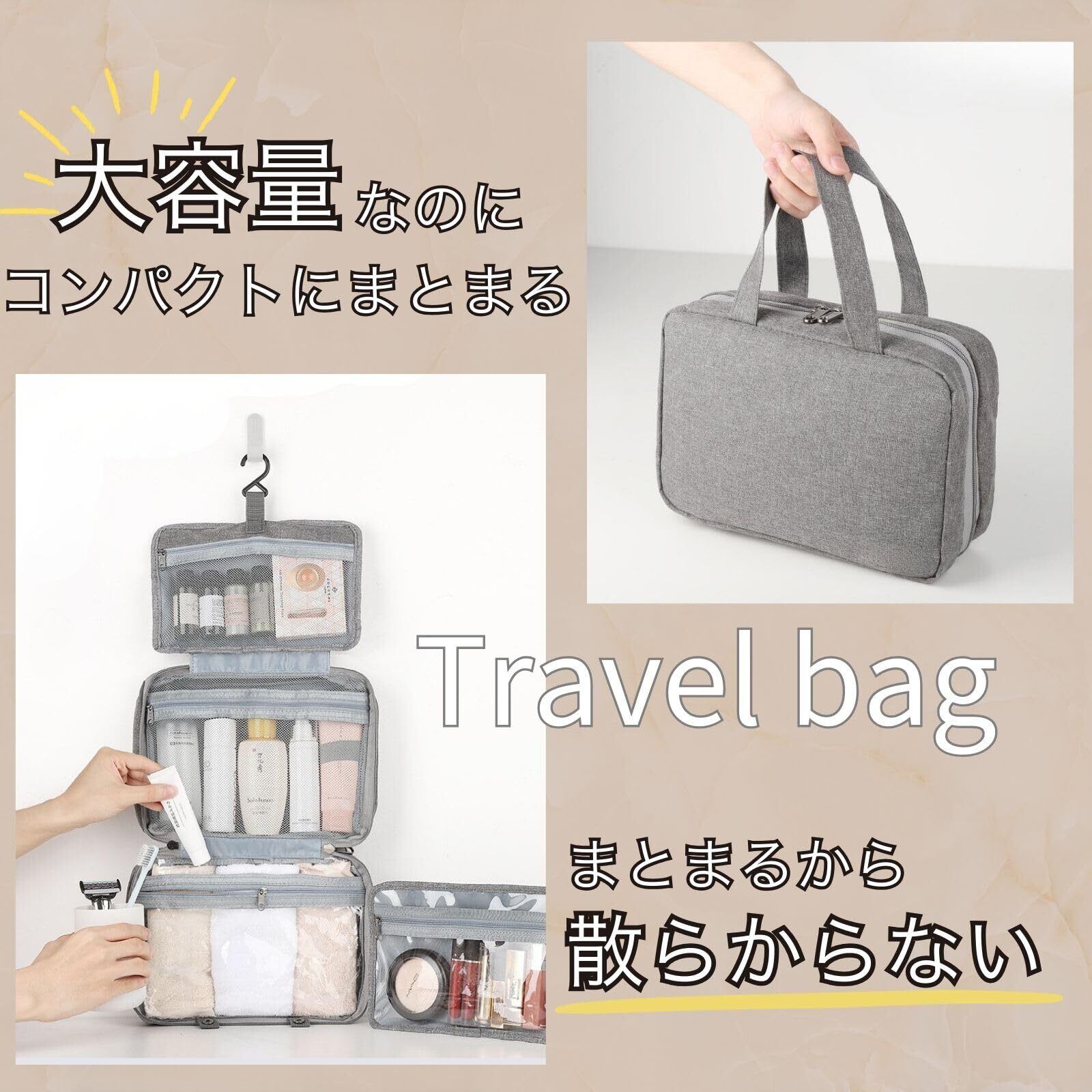 ホテルやスパで化粧品が散らばるのが苦手な方におすすめ。吊るせるデザインだから洗面所でも省スペースで使いやすい。ジムやプール、短期旅行など幅広いシーンで活躍し、バッグインバッグ感覚で持ち運べる便利な収納ポーチです。