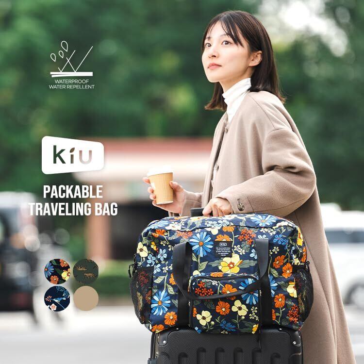 KiU キウ PACKABLE TRAVELING BAG トラベルバッグ 旅行バッグ 大容量 キャリーオン コンパクト キャリーケースに取り付け可能 はっ水 防水 コンパクト かわいい おしゃれ メンズ レディース 男女兼用 パッカブル トラベリングバッグ サイケデリック フラワー K107-169-E