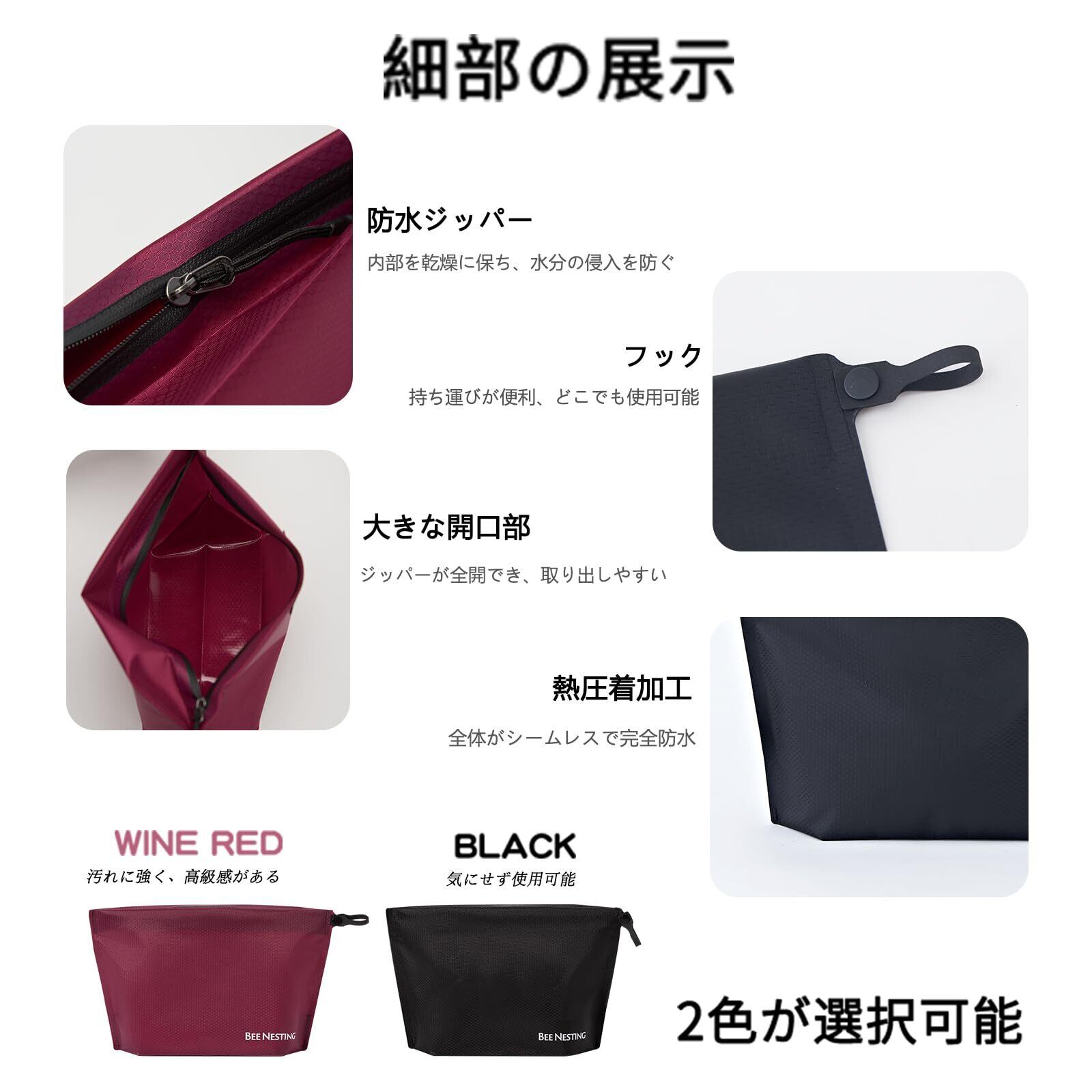 [防水・吸湿性] Bee Nestingのトイレタリーバッグは、特殊なTPUコーティングで熱圧着され、優れた耐水性を実現するドライスルーテクノロジーを採用しています。外側は70Dナイロン生地で、濡れても簡単に拭き取れます。保管前にしっかりと水気を切っておくと、乾燥時間を短縮できます。