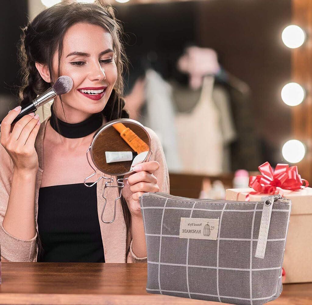 LOYELEY 化粧ポーチ レディース メイクポーチ 収納袋 トラベルポーチ おしゃれ かわいい 軽量 コンパクト 大容量 化粧品 小物類の収納用 持ち運び 旅行用 (灰格子)
