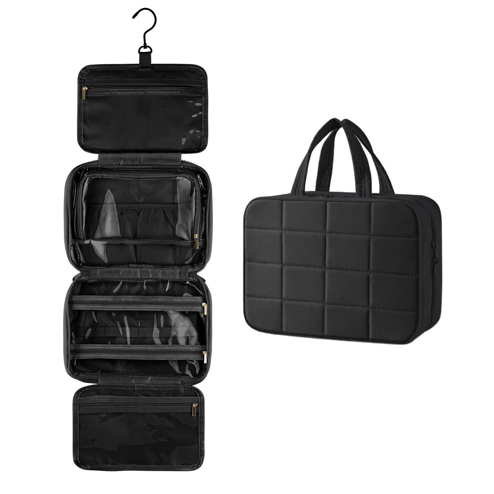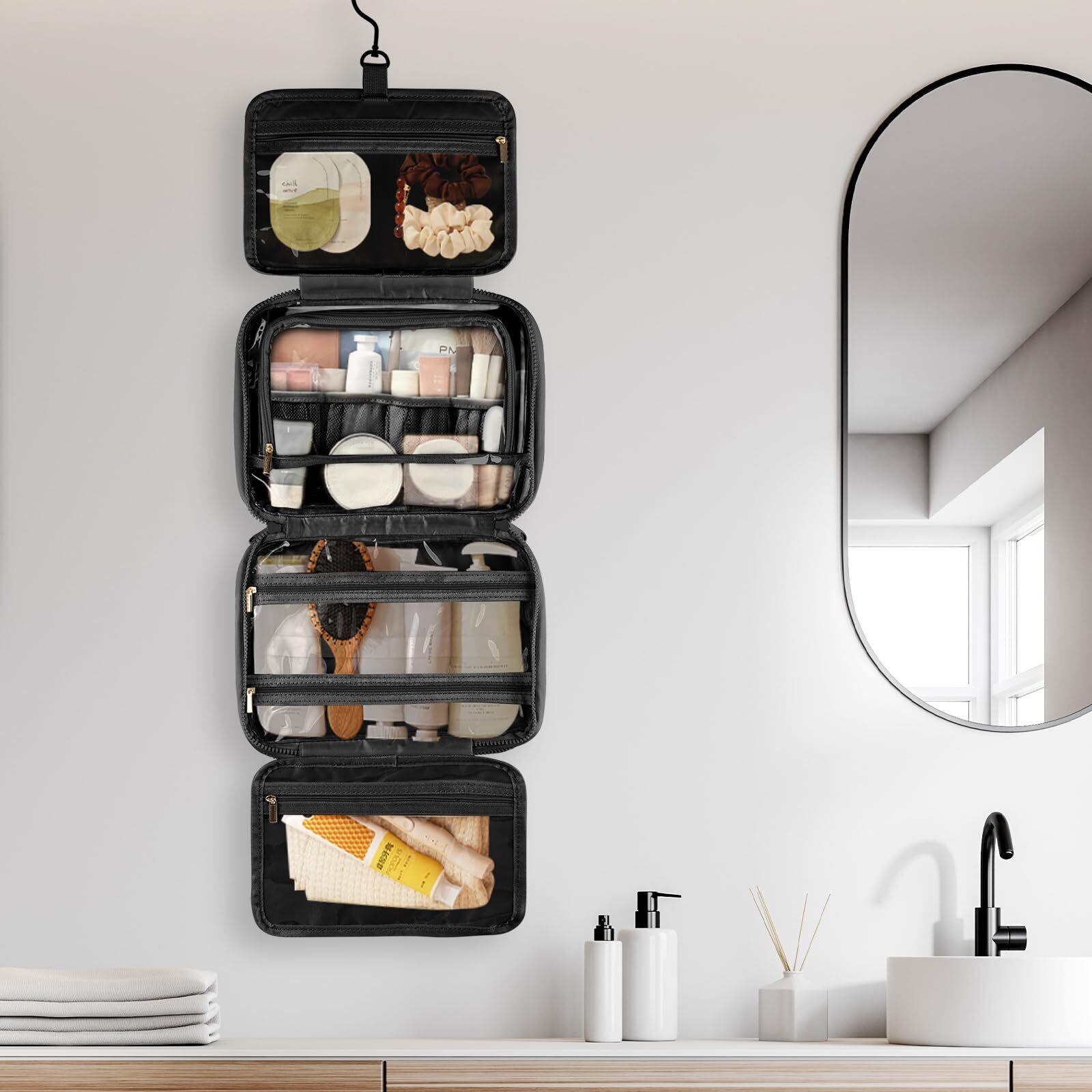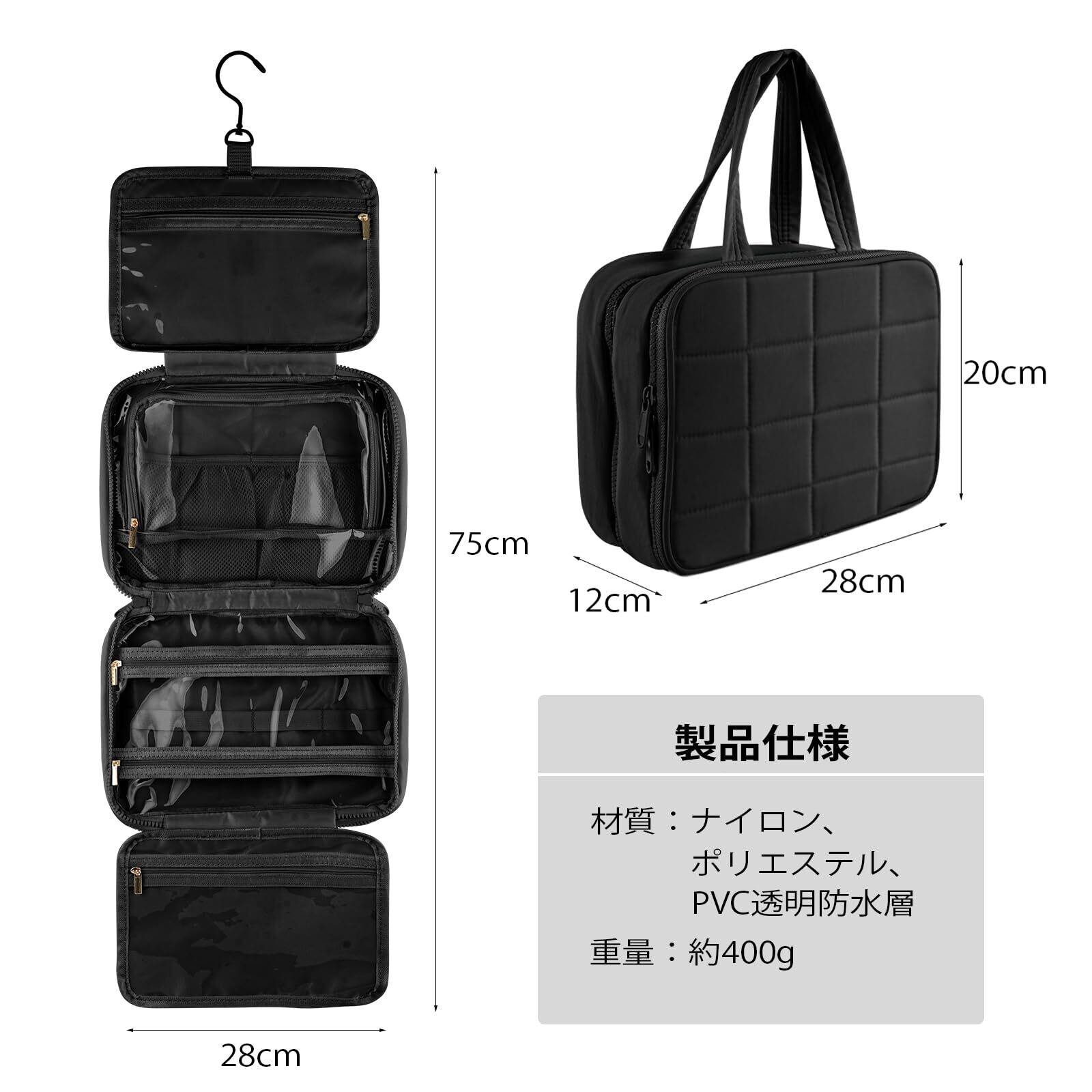 voocye トラベルポーチ 吊り下げ トイレタリーバッグ 旅行用ポーチ メイクポーチ 大容量 防水 軽量 洗面用具 バスルームポーチ 折り畳み式 手提げ付き 出張 旅行(ブラック)