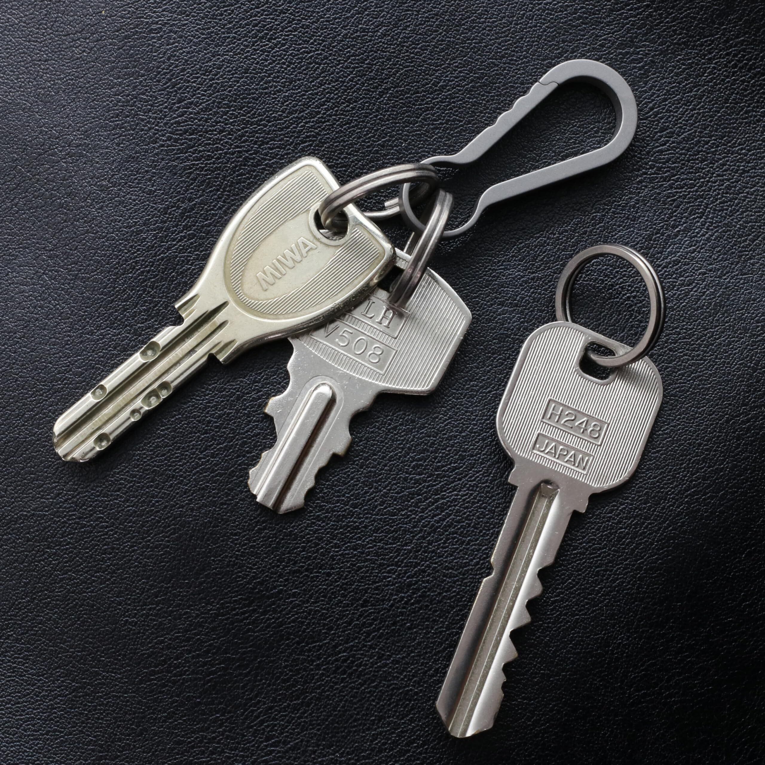 黒色のチタンキーリングやキーホルダーに合わせやすい、ブラック仕上げのミニカラビナ