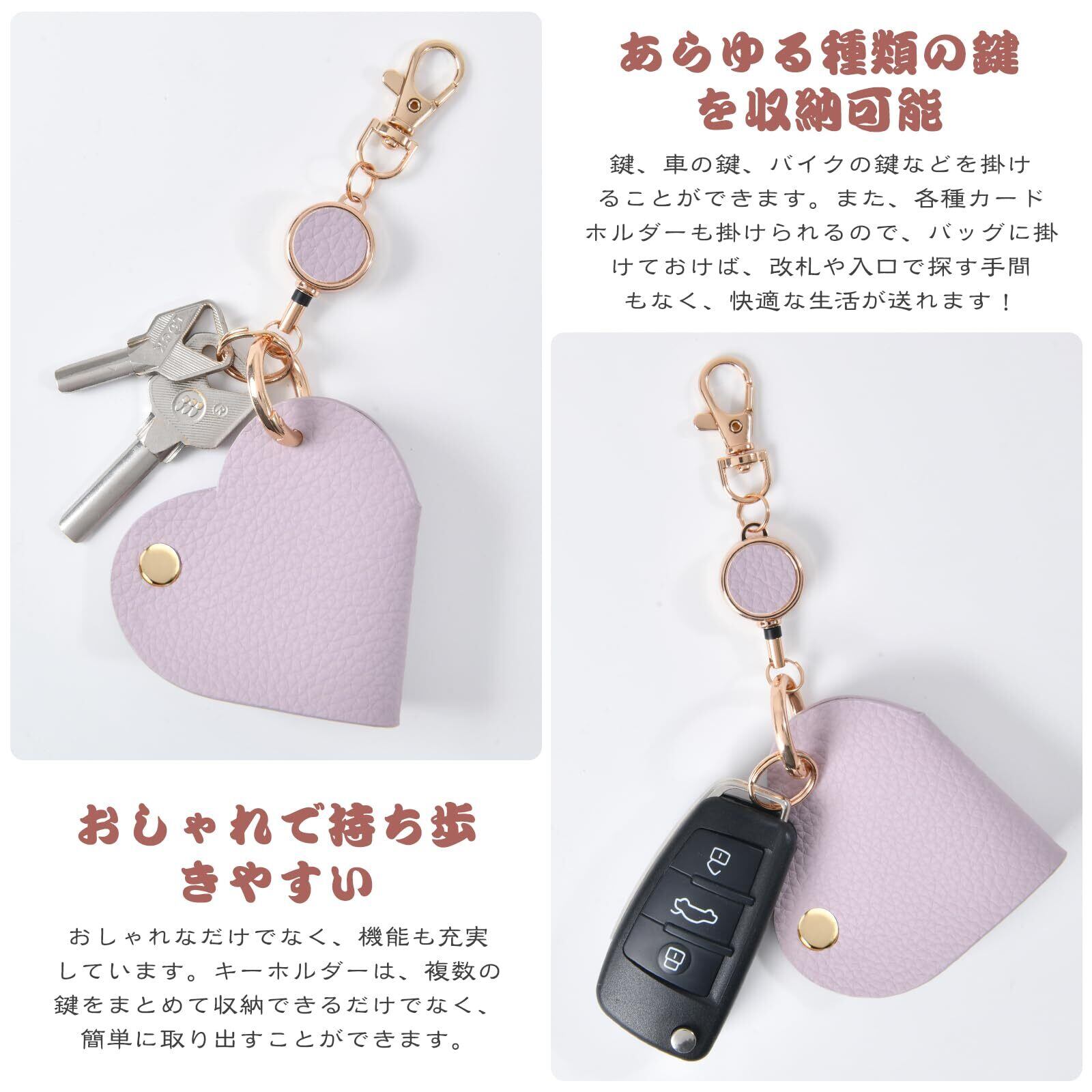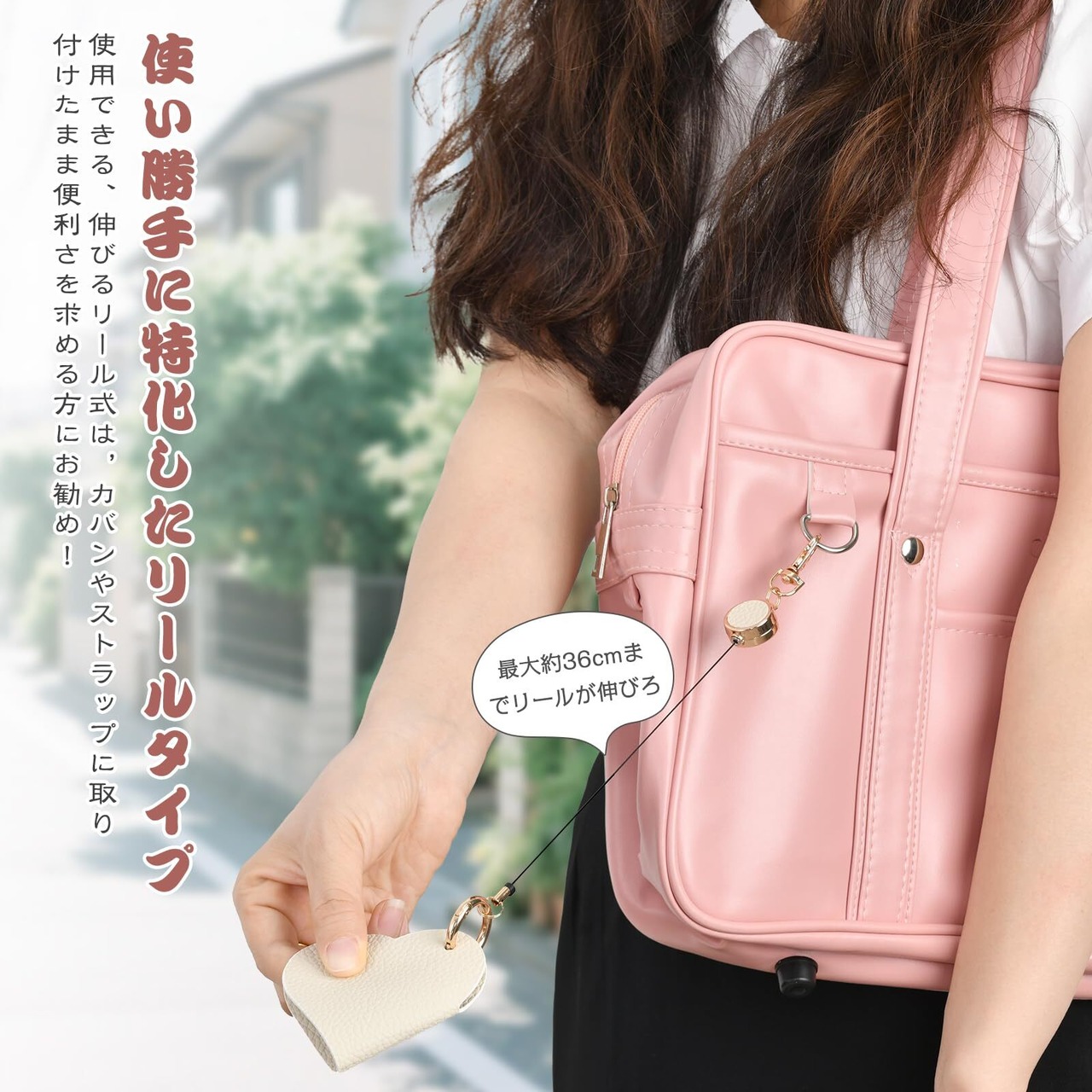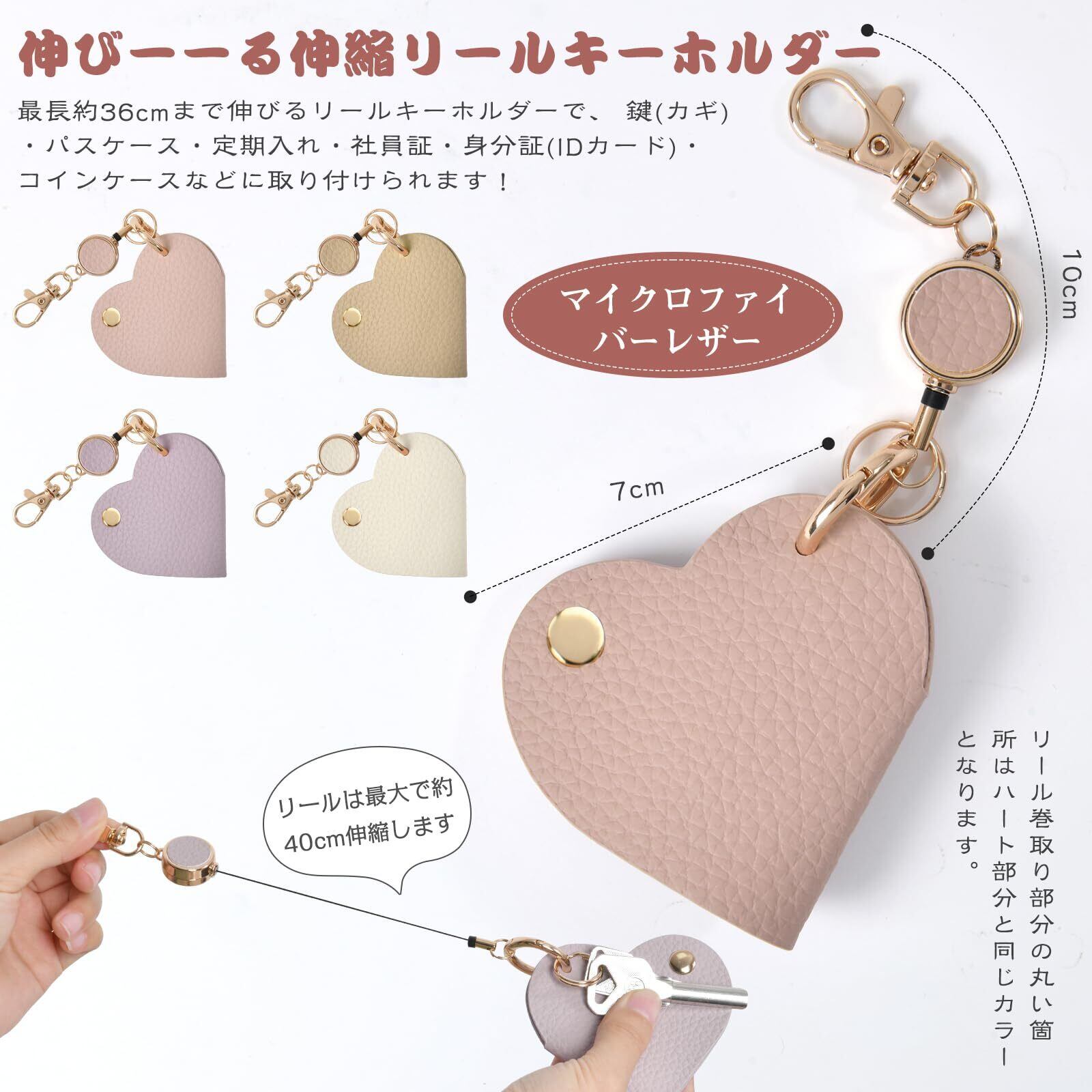 [akoyo] リールストラップ キーホルダー かわいい ハート 伸びるリール付キーホルダー 強力 パスケース 鍵 取り外し可能