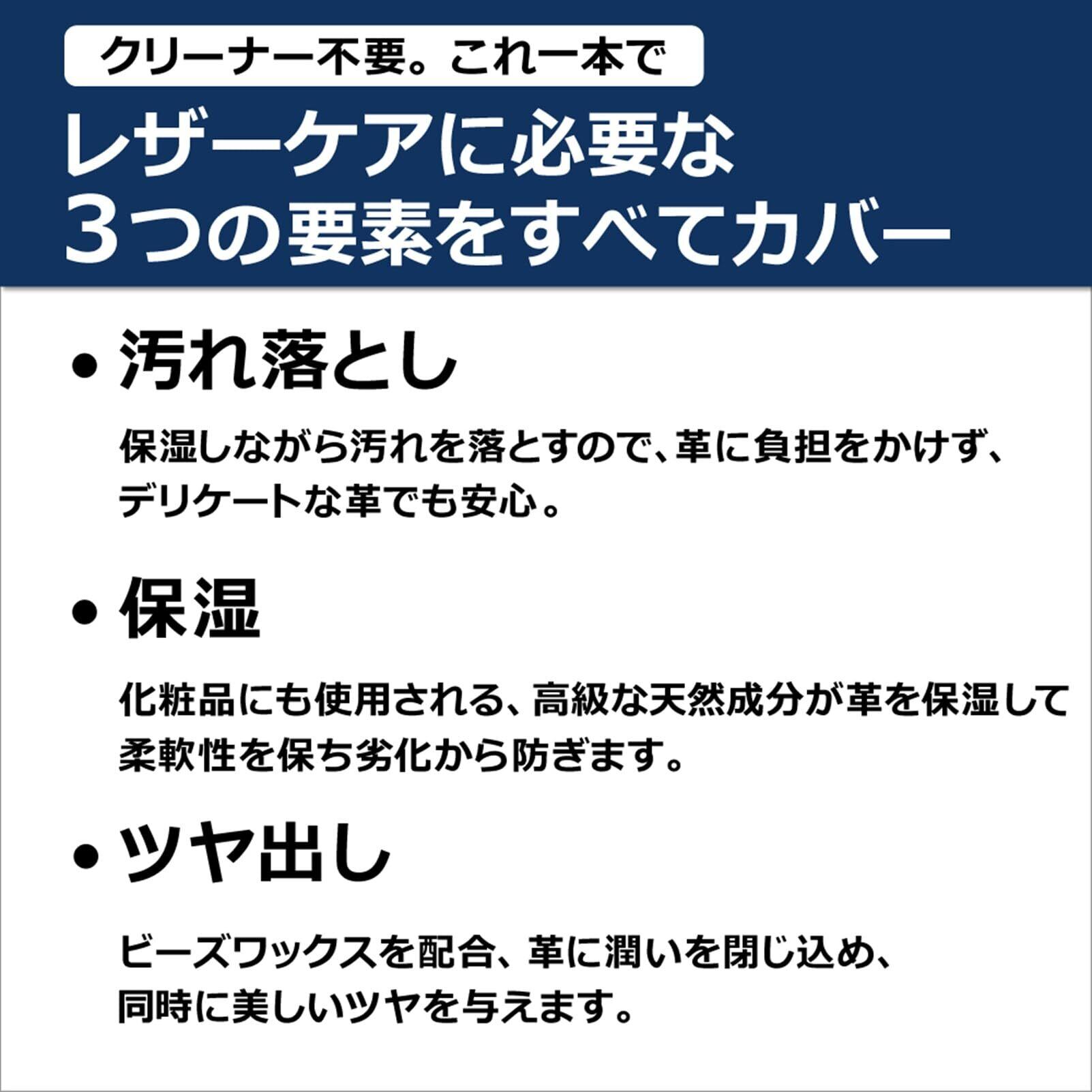 【あらゆる革製品のお手入れはこれ1本でOK!】レザーバッグ、財布、ベルト、革靴、革ジャン、ソファ、レザースニーカーなど汚れ落とし、保湿、ツヤだしまでお手入れの全てがこれ一本でできる、オールインワンのレザーローションです。