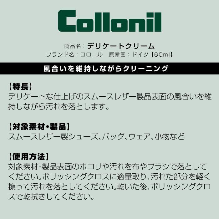 [コロニル] 国内正規品 【デリケートクリーム】 革製品 靴 クリーニング 保革 栄養 ツヤ出し 手入れ 汚れ落とし シューケア レザーケア カラーレス 60ml