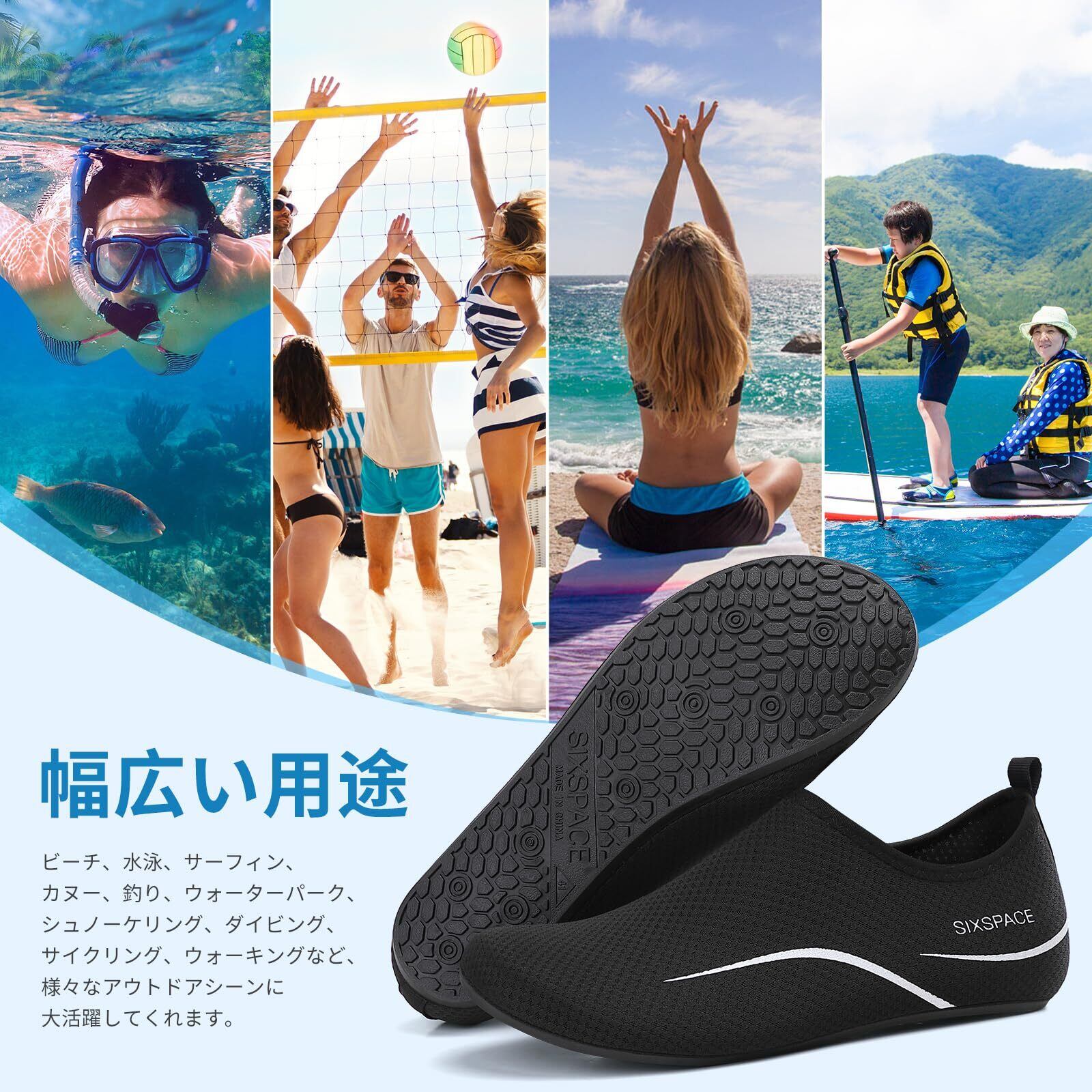[SIXSPACE] マリンシューズ ウォーターシューズ 男女兼用 アクアシューズ フィットネスシューズ レディース メンズ 軽量 通気 滑り止 ヨガ サーフブーツ