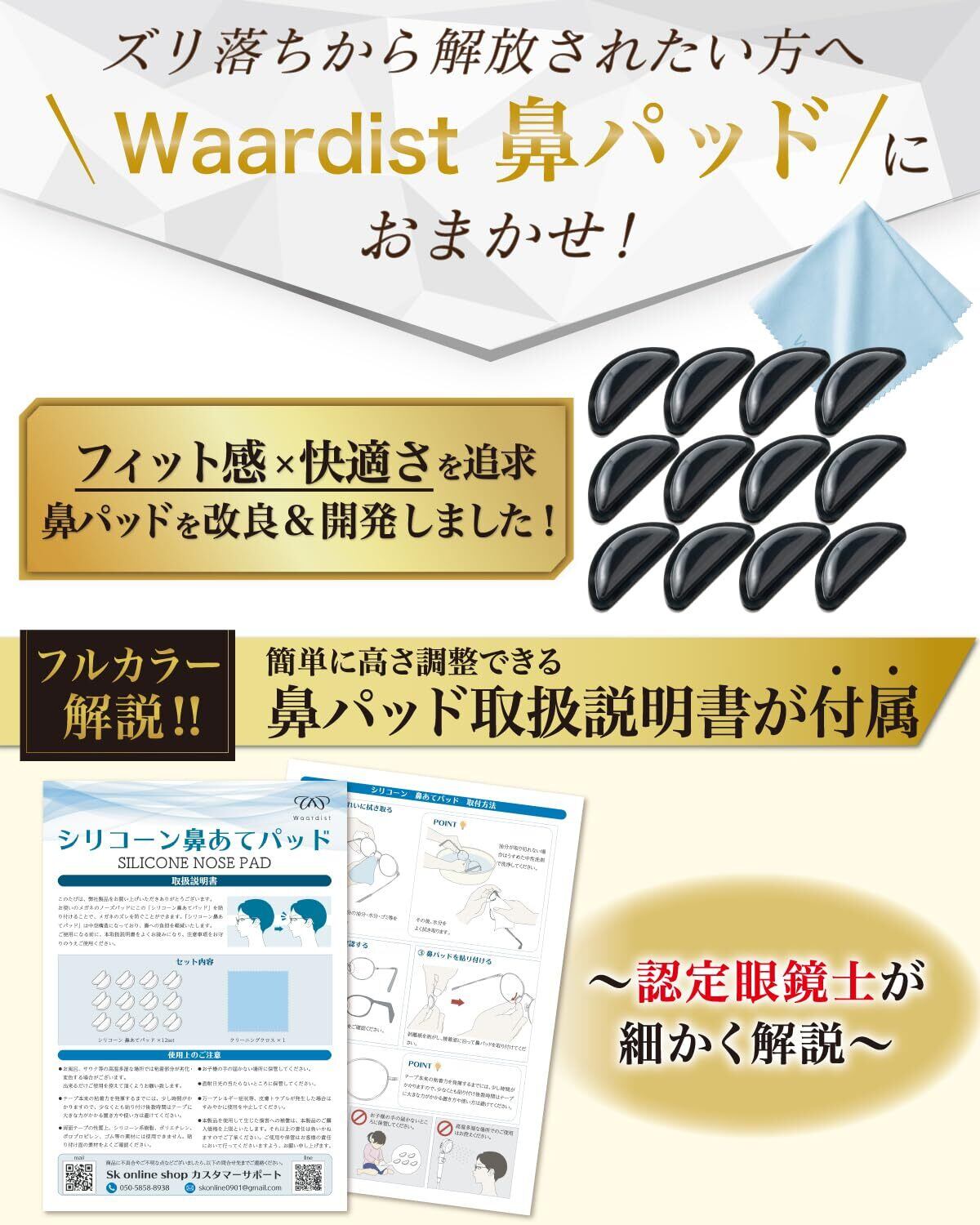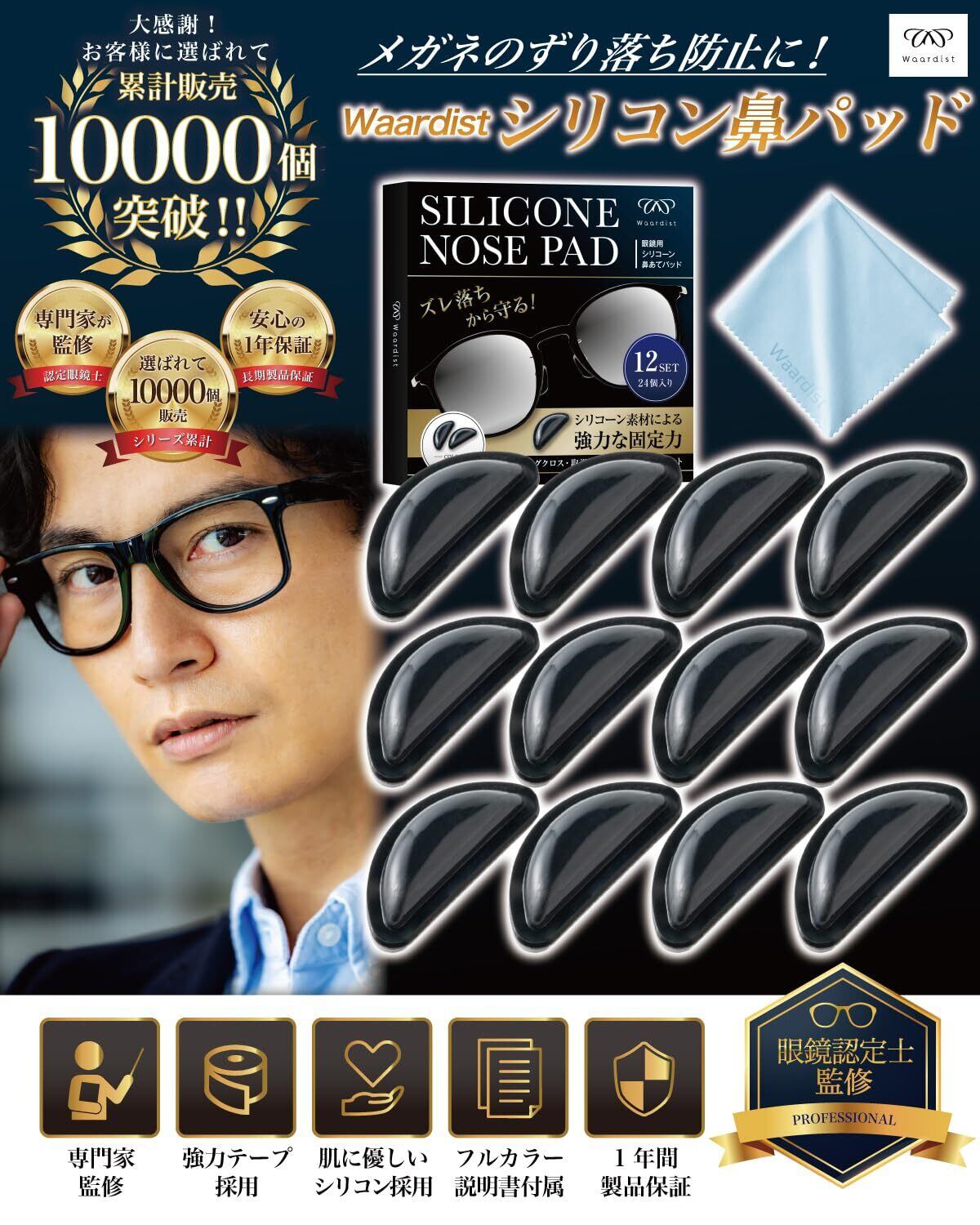 [Waardist] 【認定眼鏡士が監修】 メガネ 鼻パッド シリコン 滑り止め ノーズパッド 跡 防止 パット 3M両面テープ採用 12セット計24個