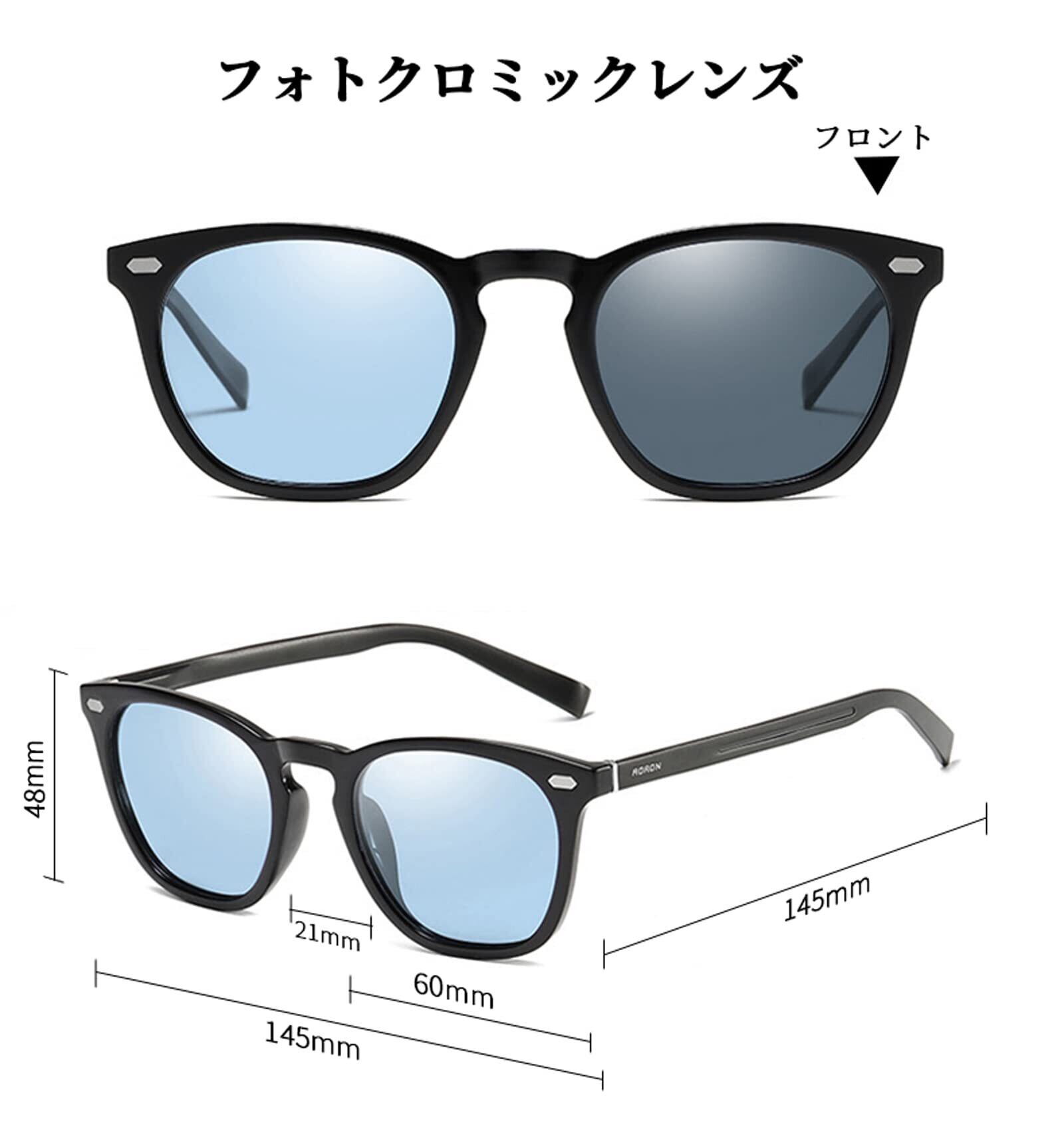 【調光機能レンズ】 調光レンズとは陽光の紫外線の強さによって変色しますので、オフィス、室内、曇りの日など紫外線の弱い場所では変色調光が弱くなる場合がありますのでご了承ください。調光効果につきましては付属の紫外線照射灯(ブルーライト)と調光説明書確認ください。