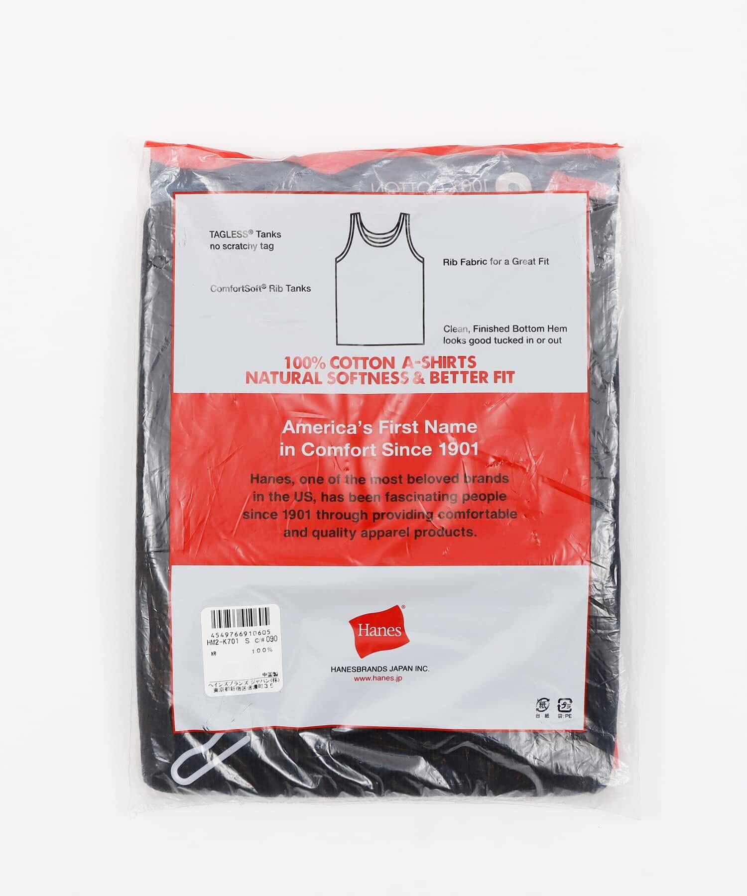 1947年、「毎日着る身近なアイテムだからこそ、リーズナブルな価格でまとめ買いしたい」という要望に応え、誕生したHanes(R)(ヘインズ)マルチパック。その着心地の良さが高く評価され、メンズアンダーウェアで不動の地位を確立しました。マルチパックの代表アイテム「2P Pack A-Shirt(2枚入りパックAシャツ)」、タンクトップモデルのAシャツです。リブ編みの一種で凹凸感のあるテレコ素材を使用した優れた伸縮性による心地良いフィット感が魅力。脇に縫い目のない丸胴編みを採用し、日本人の体型に合わせてアームホールを調整するなど快適な着心地にこだわった毎日使えるAシャツです。