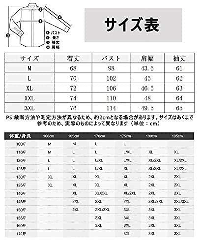 M=日本XS L=日本S XL=日本M 2XL=日本L 3XL=日本2L 4XL=日本3L 【M:肩幅43cm 着丈69cm バスト98cm 袖丈61cm】 【L:肩幅44cm 着丈71cm バスト102cm 袖丈64cm】 【XL:肩幅45cm 着丈72cm バスト108cm 袖丈65cm】 【2XL:肩幅46cm 着丈74cm バスト115cm 袖丈66cm】 【3XL:肩幅47cm 着丈76cm バスト120cm 袖丈67cm】【実寸サイズ 】 日本通常サイズより2~3サイズ小さいので、サイズ表を確認するようにお願いします !!! サイズの推薦 【M】身長:160-170cm / 体重:45-50kg【L】身長:170-175cm / 体重:50-55kg 【XL】身長:175-180cm / 体重:55-60kg 【2XL】身長:180-185cm / 体重:60-65kg【3XL】身長:185-190cm / 体重:65-70kg ※ 注意:推薦されたサイズより大きい1つまたは2つのサイズを選ぶことができます!サイズについてご不明な点がございましたら、お気軽にお問い合