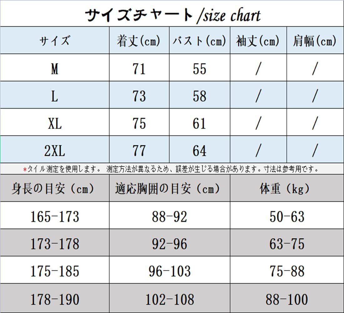 【サイズ 2XL】適応胸囲の目安:102-108cm 身長の目安:178-190cm 体重:88-100kg
