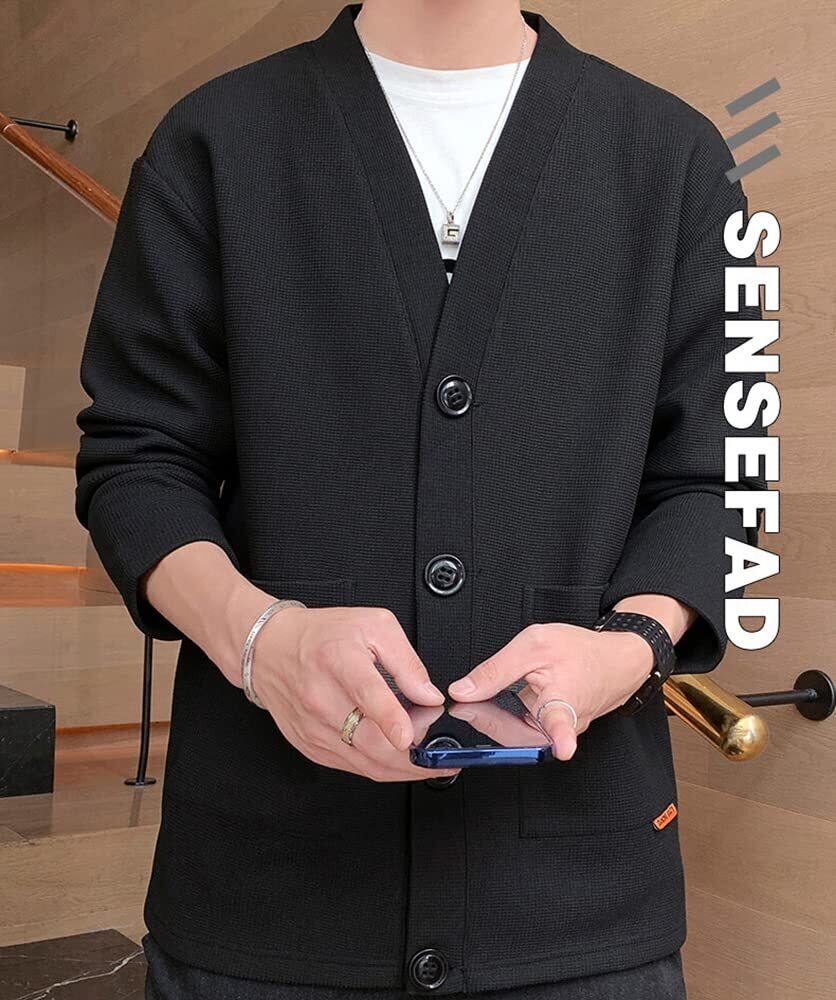 【1】秋冬の季節に活躍するメンズカーディガンが登場致します。柔らかく着心地の良い生地、サラッと羽織るだけで上品さを演出してくれる定番のカーディガンは、。【2】平織りニット素材の独特の凹凸感が高級感ある無地の素材を引き立ててくれます。厚さを控えめにして、重ねで着ても、動きにくいの不快感はないカーディガンです。肌に馴染むソフトな風合いを楽しみながら、スタイリッシュに着こなすことができます。 【3】スタイリッシュな前開きタイプボタンで留めるデザインのジャケットです。伸縮性のある良質なニット素材を使用していますので、どんな体型の方にもフィット感を体感していただけます。【4】通学にもアウトドアにも,特別なプリントと快適な生地を合わせて、オシャレ感を溢れています。だからこのアイテム、持っている価値があります。