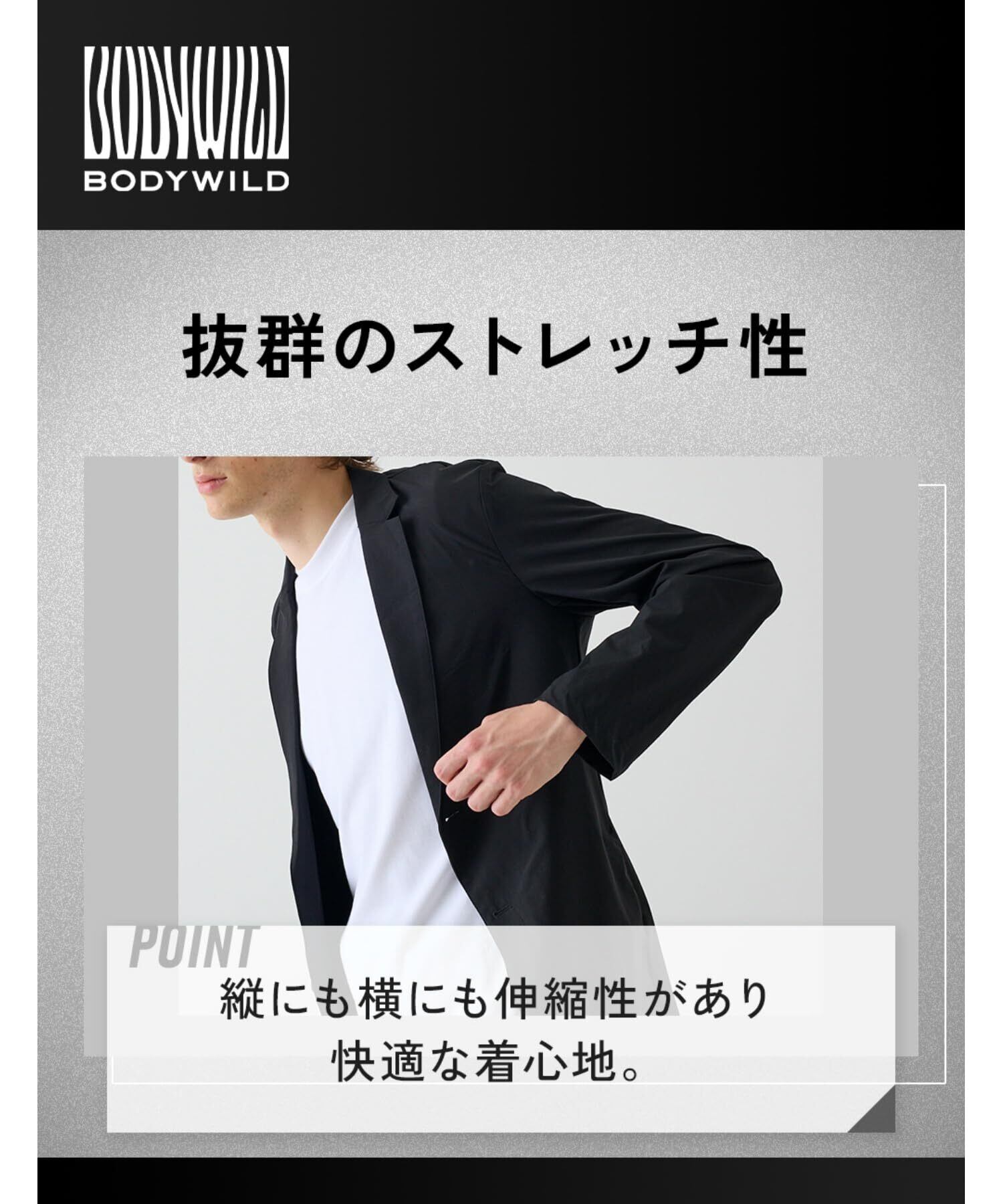 [グンゼ] テーラードジャケット BODY WILD/ボディワイルド 軽量 速乾 ストレッチ素材 洗濯可 メンズ