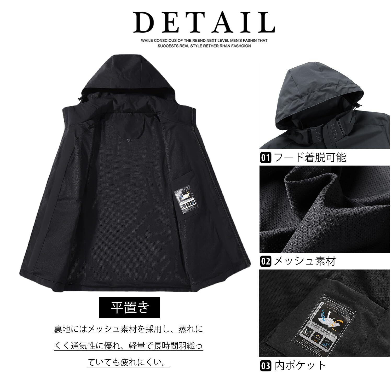 【特価商品】[GmrvaMen] ウインドブレーカー メンズ マウンテンパーカー ジャケット フード着脱可 アウトドア 作業着 防風 撥水 登山 釣り 軽量 カジュアル 大きいサイズ 春 秋 秋服 | 無意味ステッカー
