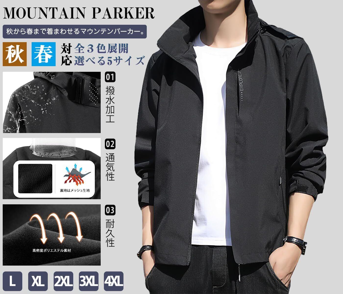 [GmrvaMen] ウインドブレーカー メンズ マウンテンパーカー ジャケット フード着脱可 アウトドア 作業着 防風 撥水 登山 釣り 軽量 カジュアル 大きいサイズ 春 秋 秋服