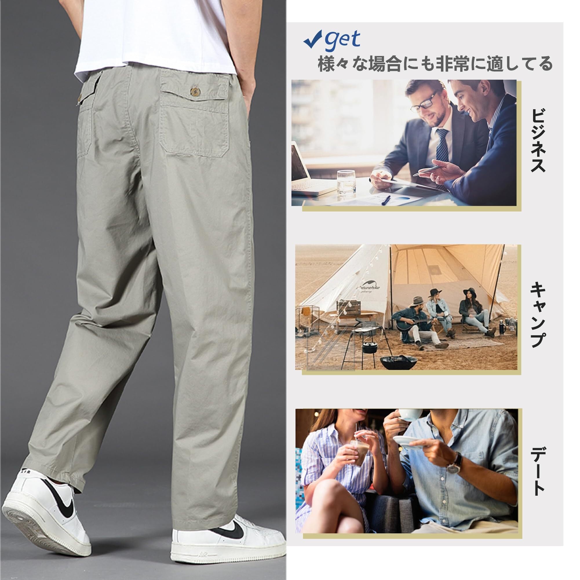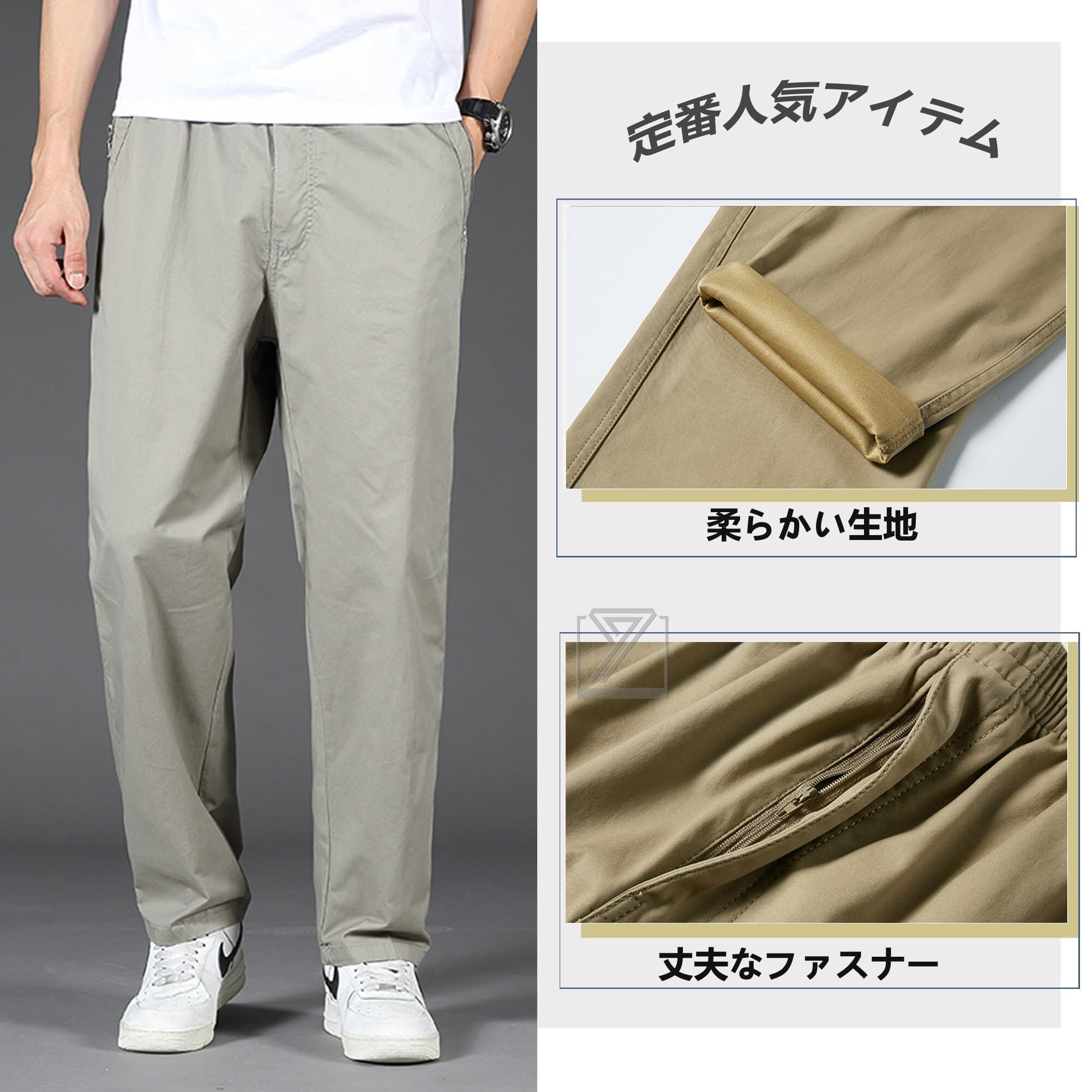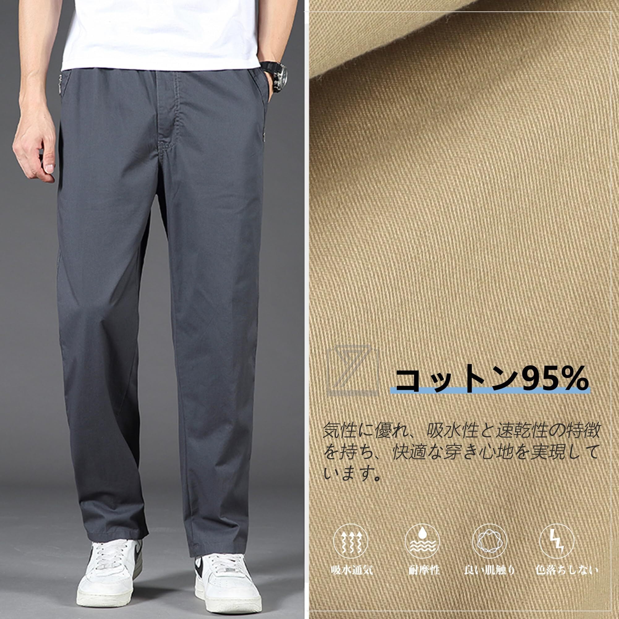 [快適なチノパン] 良い肌触り、通気性拔群、耐摩耗性、色落ちしない。通気性に優れ、吸水性と速乾性の特徴を持ち、毎日快適な着こなしをサポート。
