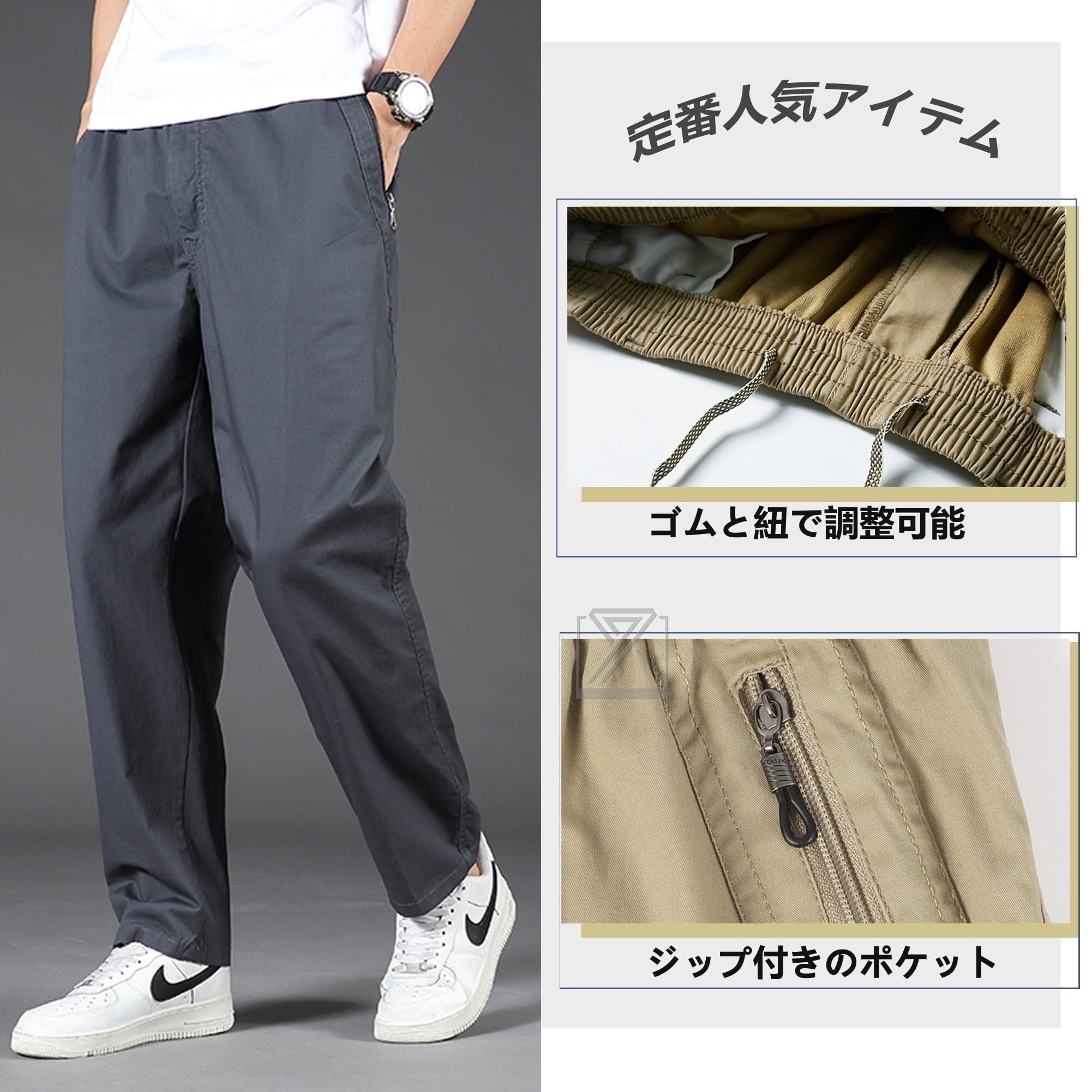 [Kayiyasu] チノパン メンズ パンツ 大きいサイズM-6XL イージー ロング ズボン ボトムス ワークパンツ 綿 ウエストゴム カジュアル ゆったり