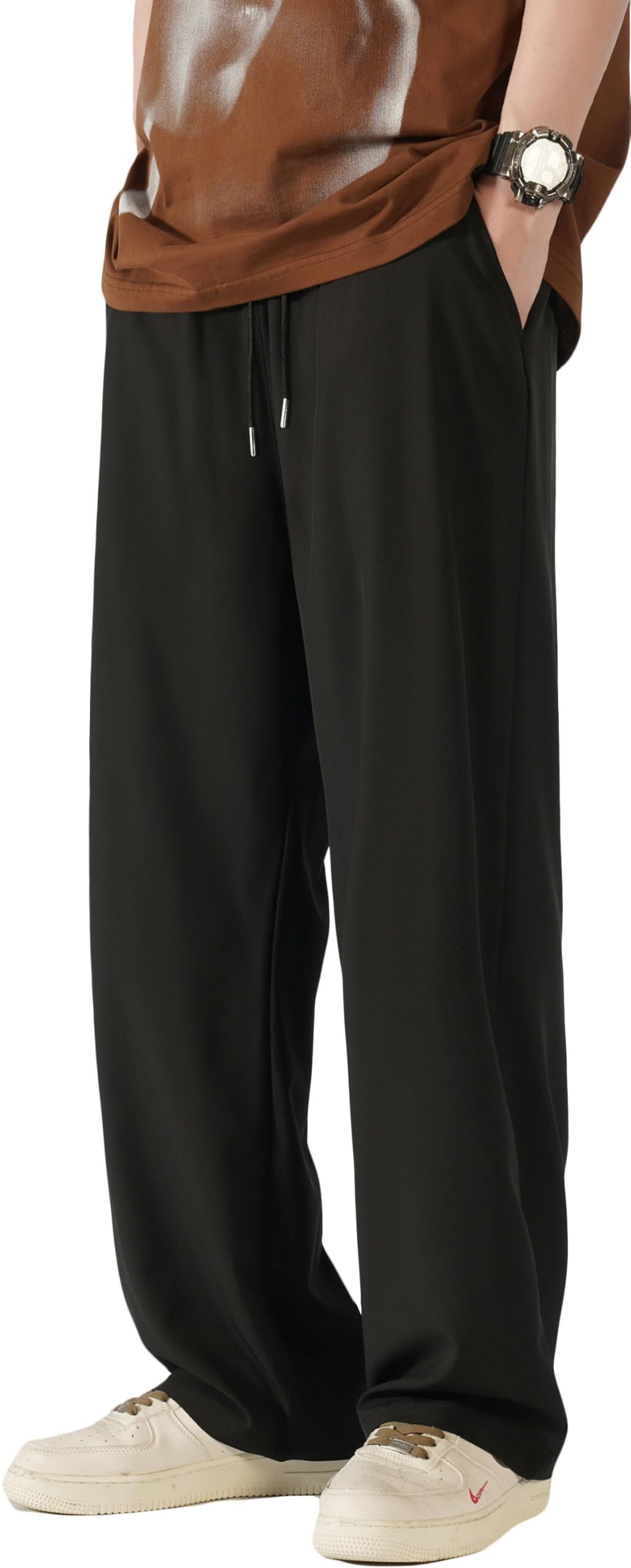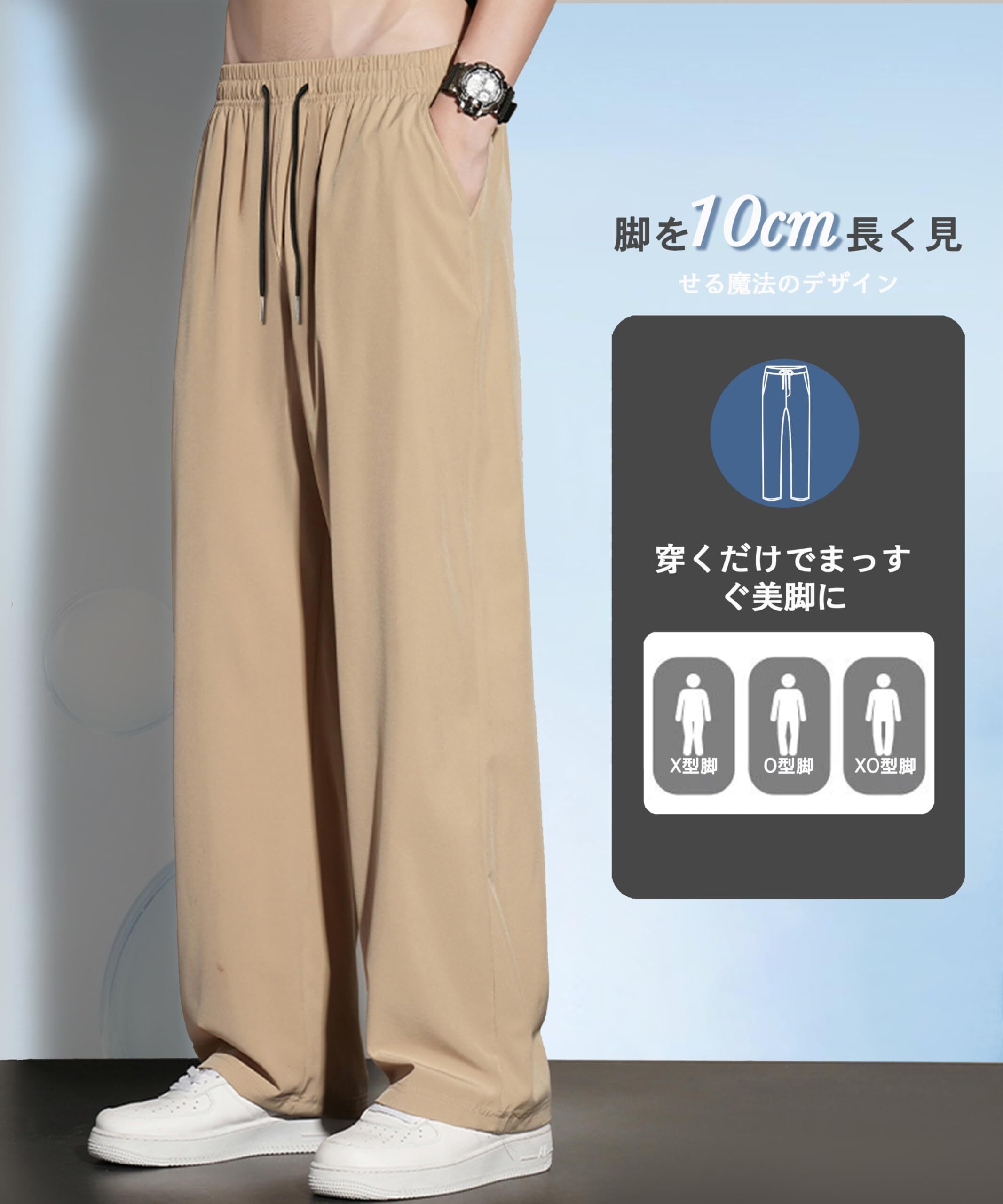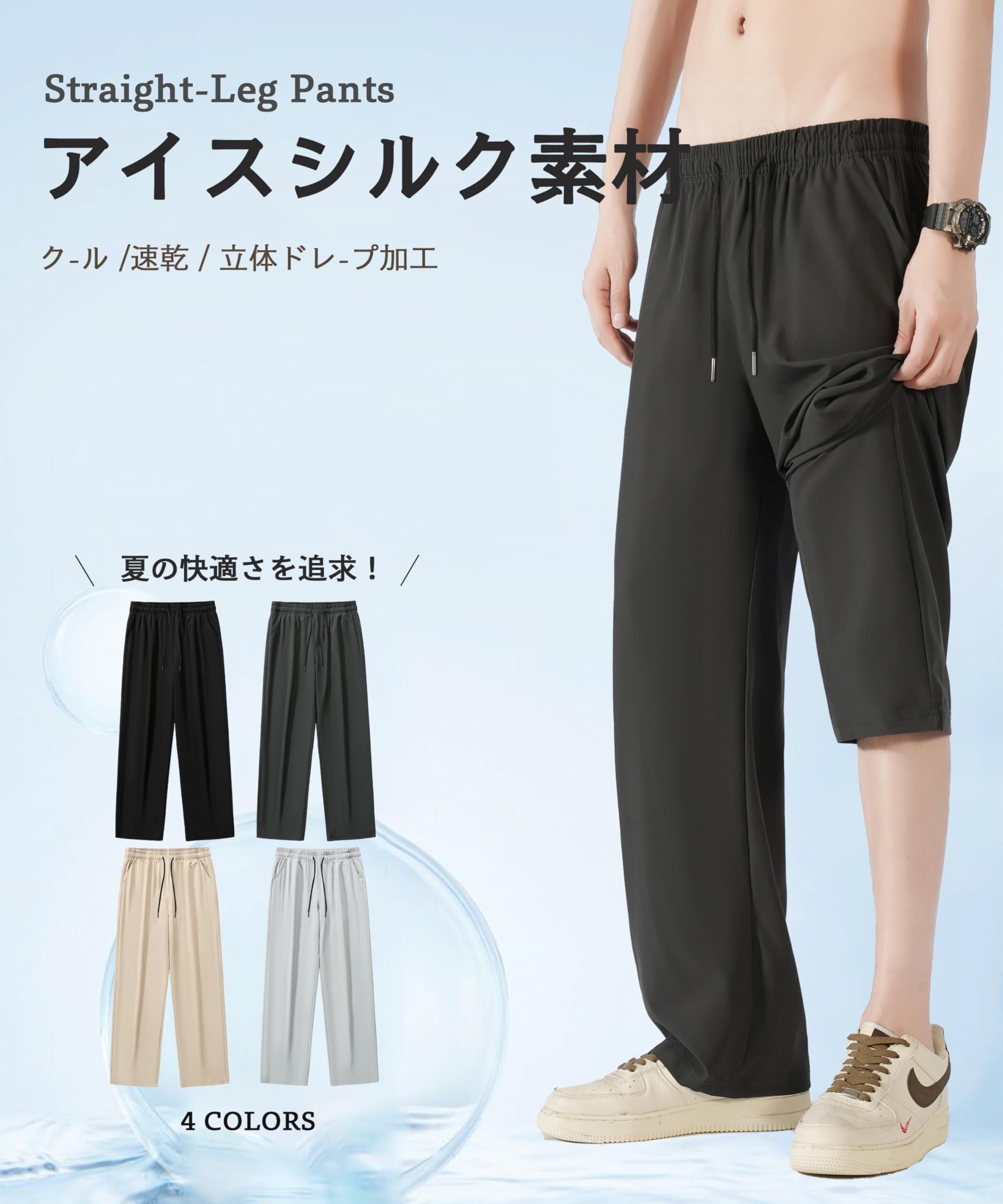 [hxsonw] ズボン メンズ ロングパンツ 涼しい 夏服 ゆったり ストレッチ 速乾 ストレートパンツ カジュアル 薄手 軽量 接触冷感 大きいサイズ トラウザーズ アイスシルクパンツ 夏