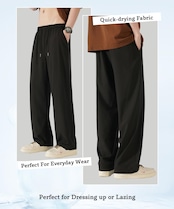 【新着商品】[hxsonw] ズボン メンズ ロングパンツ 涼しい 夏服 ゆったり ストレッチ 速乾 ストレートパンツ カジュアル 薄手 軽量 接触冷感 大きいサイズ トラウザーズ アイスシルクパンツ 夏 | 無意味ステッカー