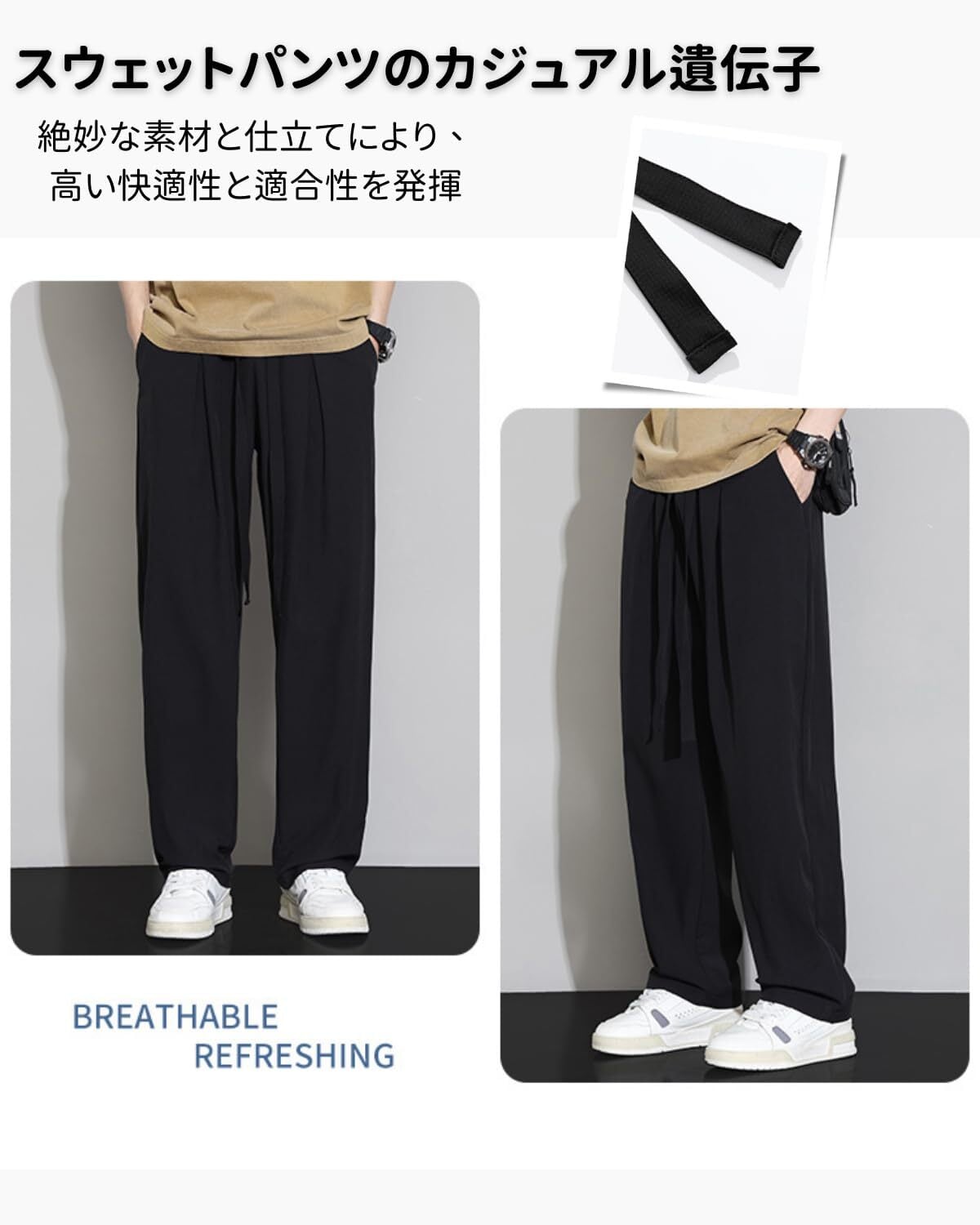 【特価商品】[xulee] 冷感パンツ ロングパンツ ワイドパンツ メンズ 夏服 アイスシルクパンツ 大きい サイズ ゆったり おしゃれ ビッグ シルエット ジョガーパンツ ズボン スウェットパンツ 薄手 涼感 涼しい 吸水速乾 かっこいい | 無意味ステッカー