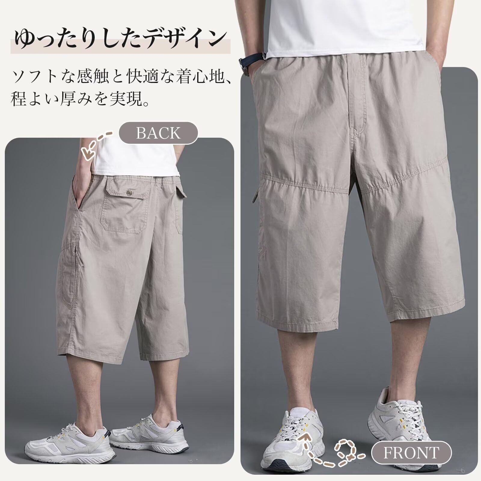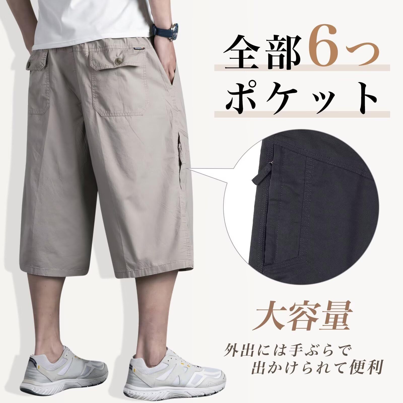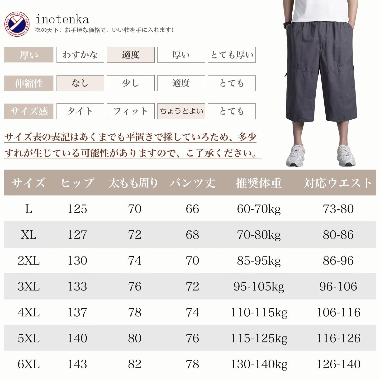 [inotenka] カーゴパンツ メンズ ハーフパンツ ショートパンツ L-6XL 大きいサイズ 6つポケット 七分丈 無地 ゆったり ビッグシルエット 半ズボン 作業着 調整紐 アウトドア ワイドタイプ カジュアル 通気 春夏