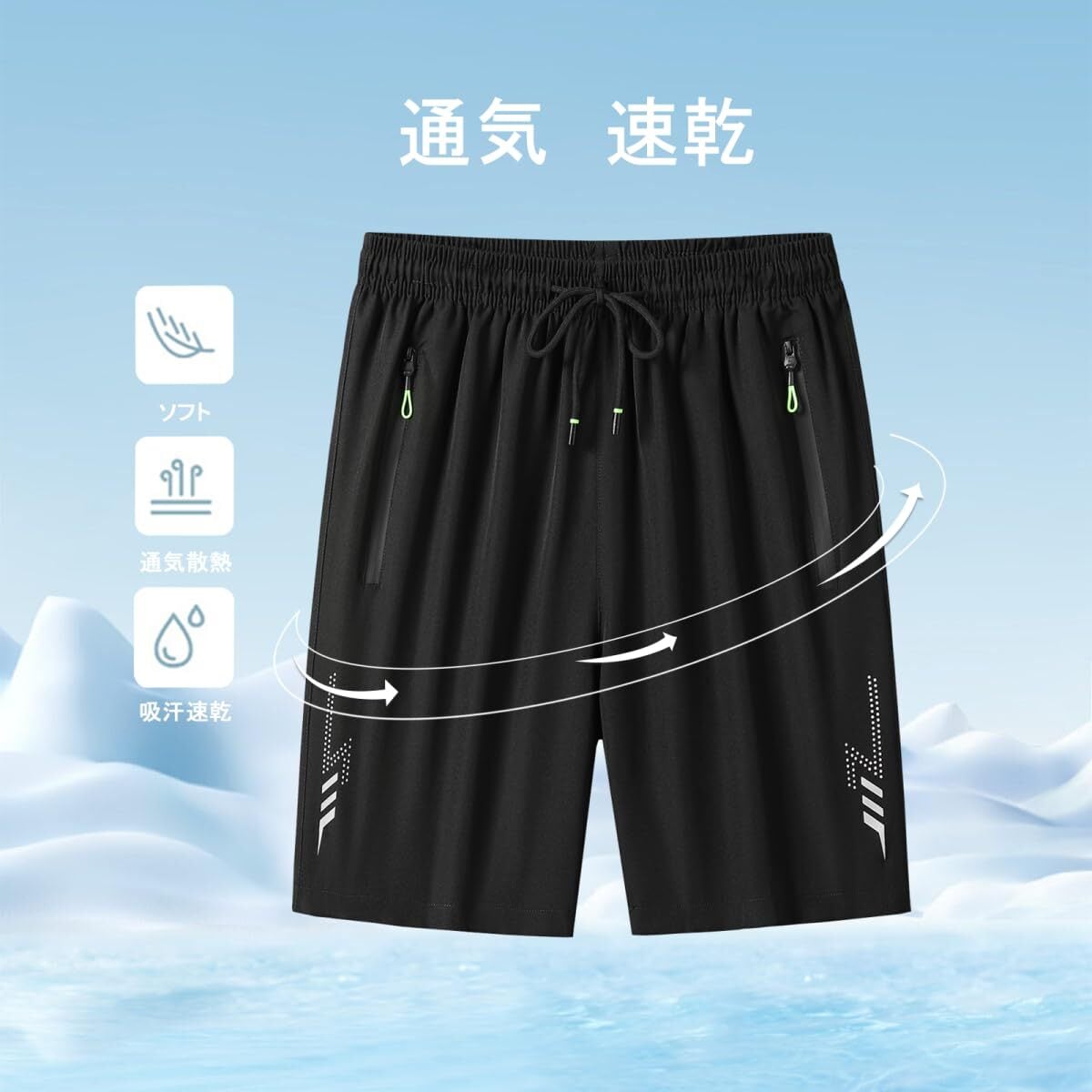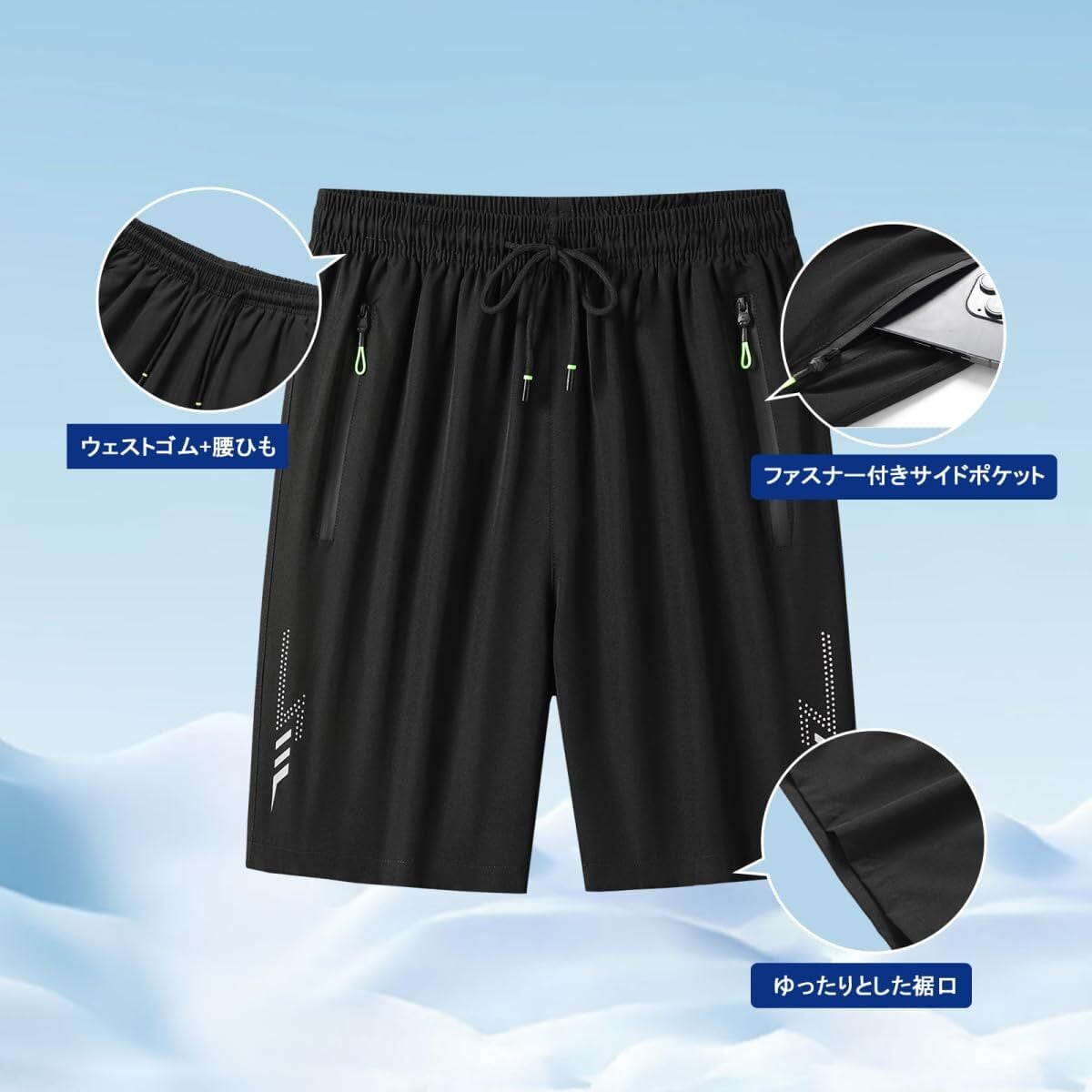[treetreerin] メンズ ハーフパンツ 冷感 ショートパンツ 速乾 通気性 5分丈 ゆったり ジップポケット 調整紐付き 短パン スポーツ ジム トレーニング ランニング 夏用 カジュアル おしゃれ アウトドアウェア