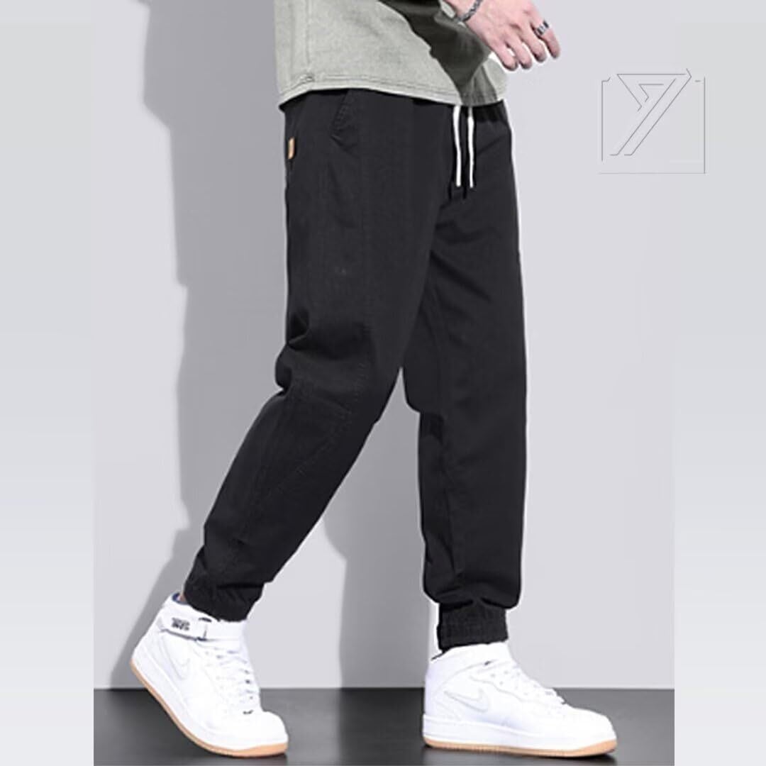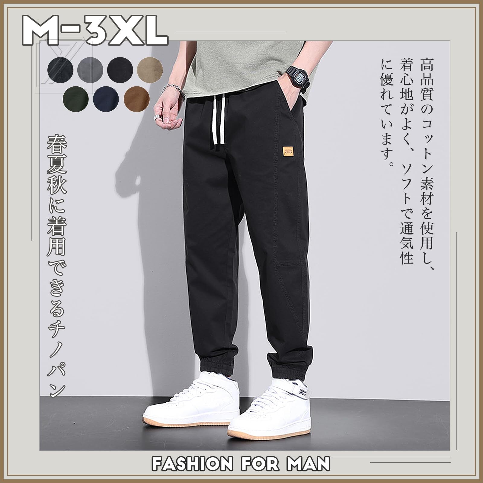 [Kayiyasu] チノパン メンズ ズボン パンツ ワークパンツ 大きいサイズ 裾リブ M~3XL ウエストゴム リラックス ボトムス 綿 黒 調整紐 アンクル丈 9分丈 ゆったり ずぼん かっこいい 無地 人気
