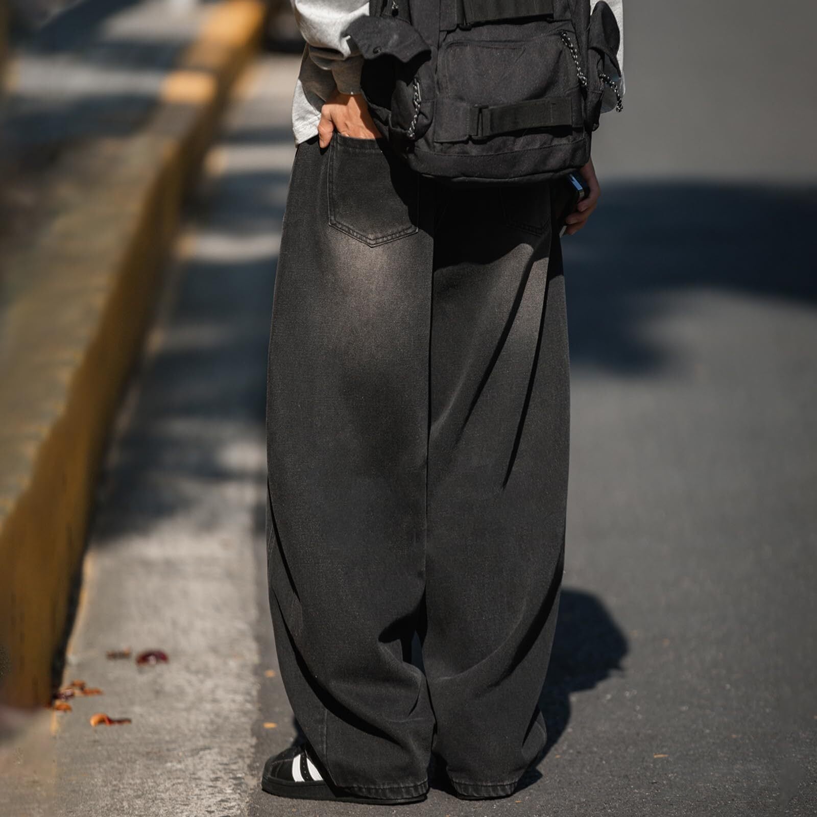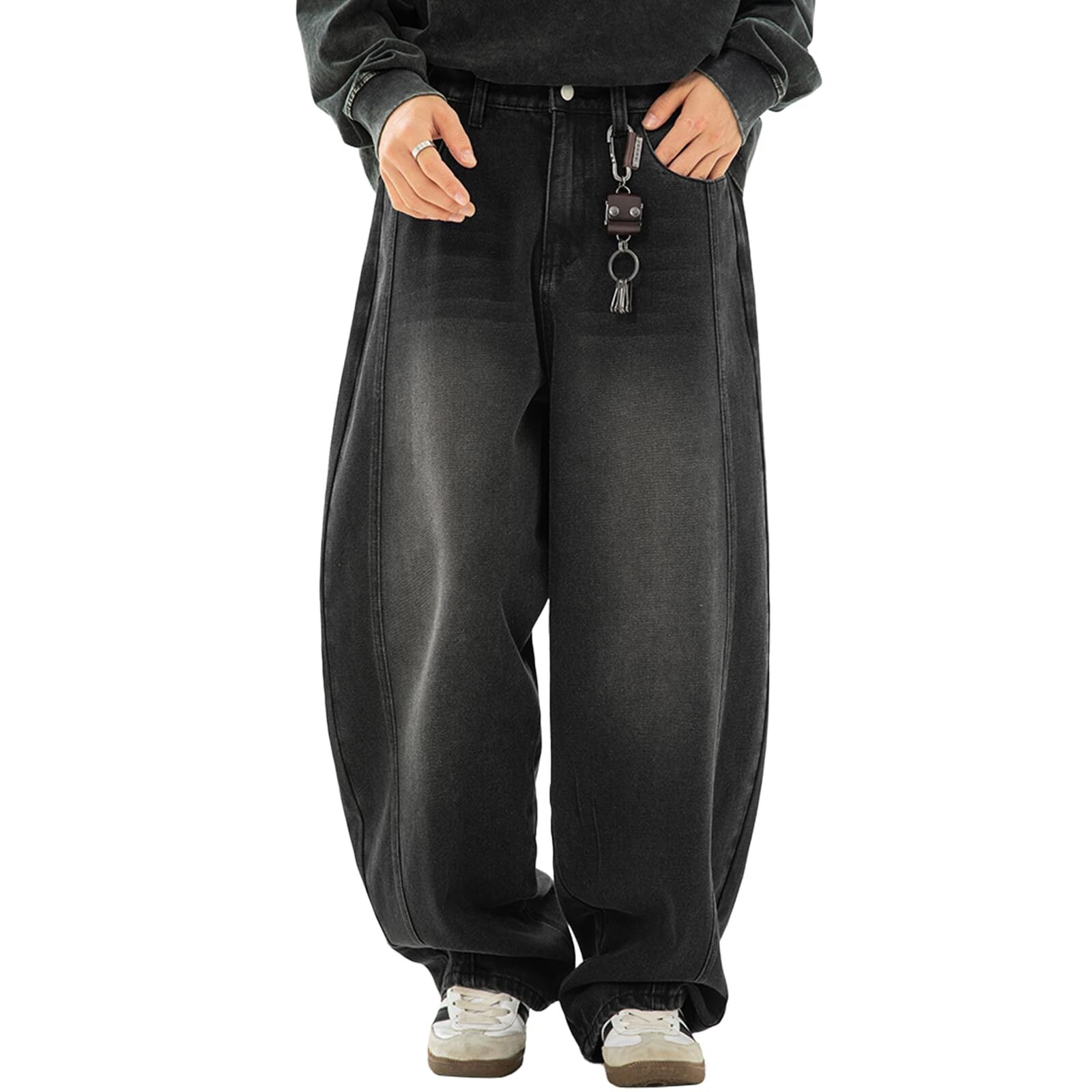 【数量限定】[Kayiyasu] デニムパンツ メンズ ズボン ワイドパンツ ジーンズ メンズ ゆったり ストリート バギーパンツ カジュアル 無地 調整紐 リラックス カッコイイ おしゃれ 春夏秋冬 | 無意味ステッカー