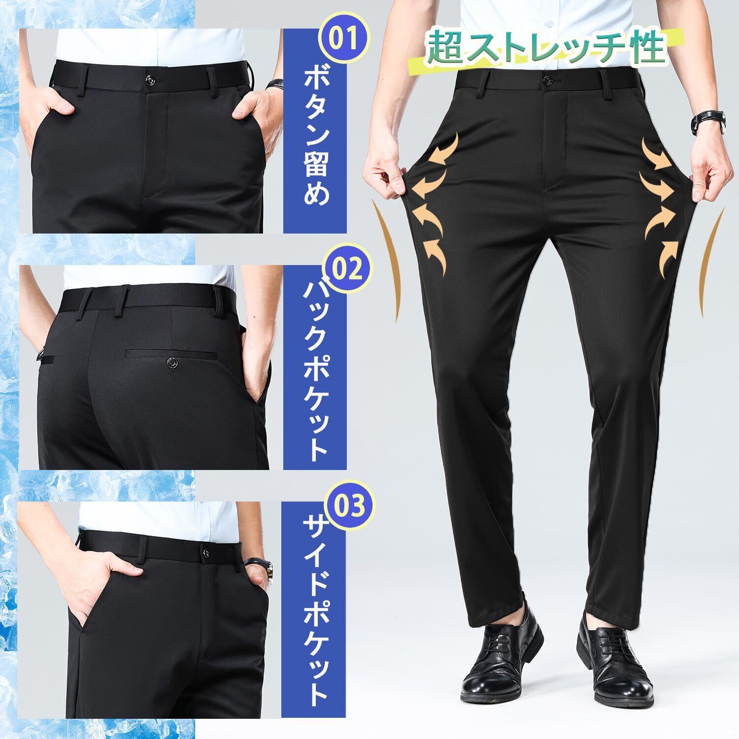 【2022最新】[HMT] スラックス メンズ ズボン 夏服 冷感パンツ スーツパンツ 接触冷感 薄手 ロングパンツ メンズ ビジネス 仕事着 パンツ ノータック ストレッチ ウォッシャブル スリム 美脚 大きいサイズ 春 夏 | 無意味ステッカー