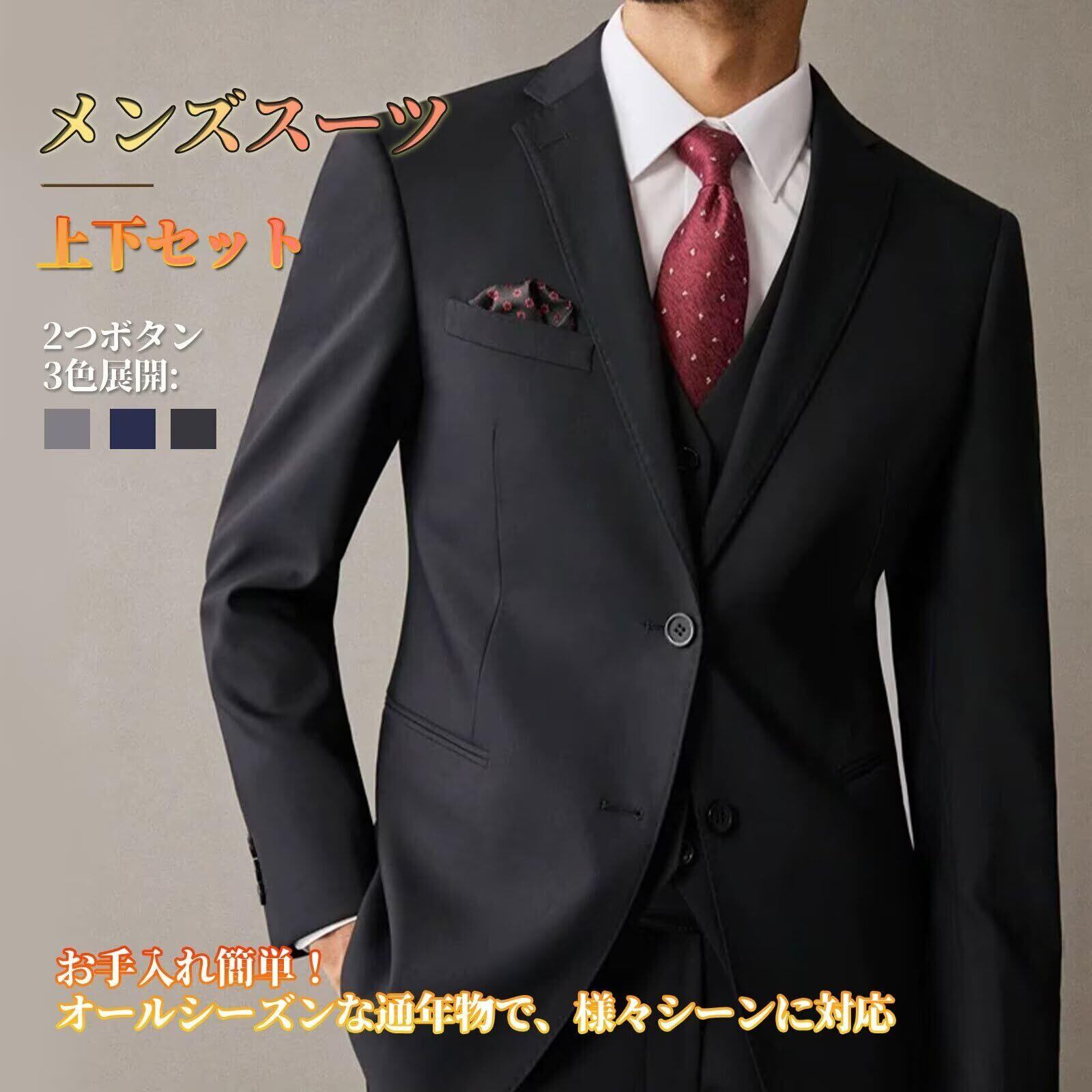 [Yeagio] スーツ メンズ 上下セット 2点セット 裾上げテープ付 ビジネススーツ セットアップ 礼服 結婚式 フォーマル 無地 メンズスーツ 2つボタン 就職スーツ パーティー