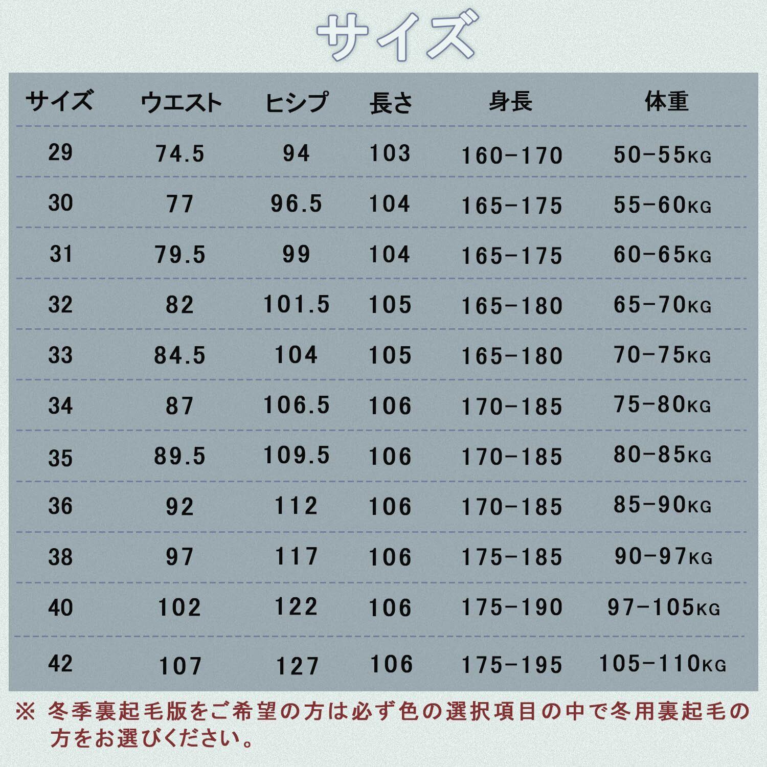 【SIZE:29】身長:160-170cm 体重:50-55kg【SIZE:30】身長:165-175cm 体重:55-60kg【SIZE:31】身長:165-175cm 体重:60-65kg【SIZE:32】身長:165-180cm 体重:65-70kg【SIZE:33】身長:165-180cm 体重:70-75kg 【SIZE:34】身長:170-185cm 体重:75-80kg 【SIZE:36】身長:170-185cm 体重:80-85kg【SIZE:38】身長:170-185cm 体重:85-90kg【SIZE:40】身長:175-185cm 体重:90-97.5kg 【SIZE:42】身長:175-190cm 体重:97.5-105kg