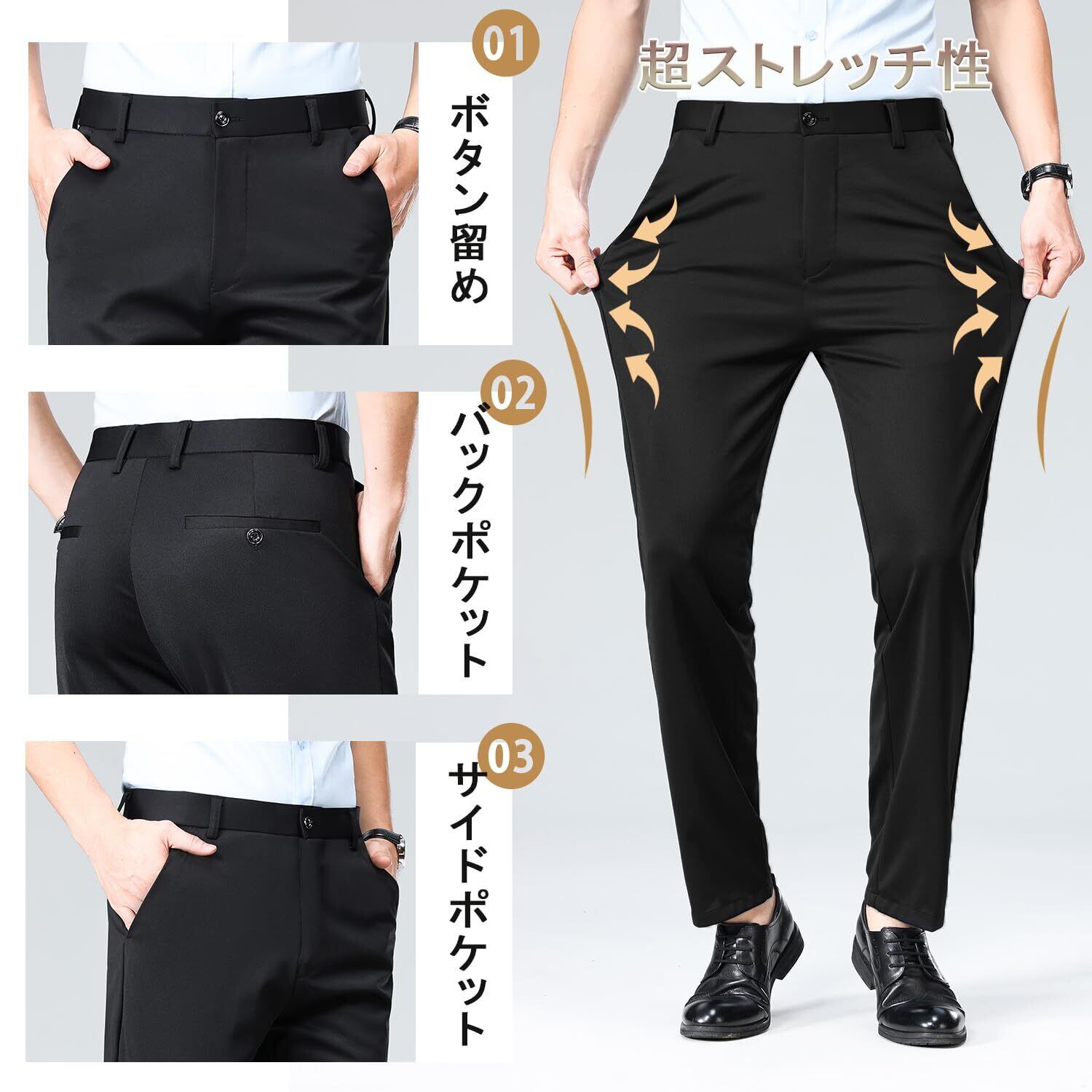 【数量限定】[HMT] スラックス メンズ ズボン スーツパンツ 秋服 ロングパンツ メンズ ビジネス 仕事着 パンツ ノータック ストレッチ ウォッシャブル スリム 美脚 大きいサイズ 春秋冬服 | 無意味ステッカー