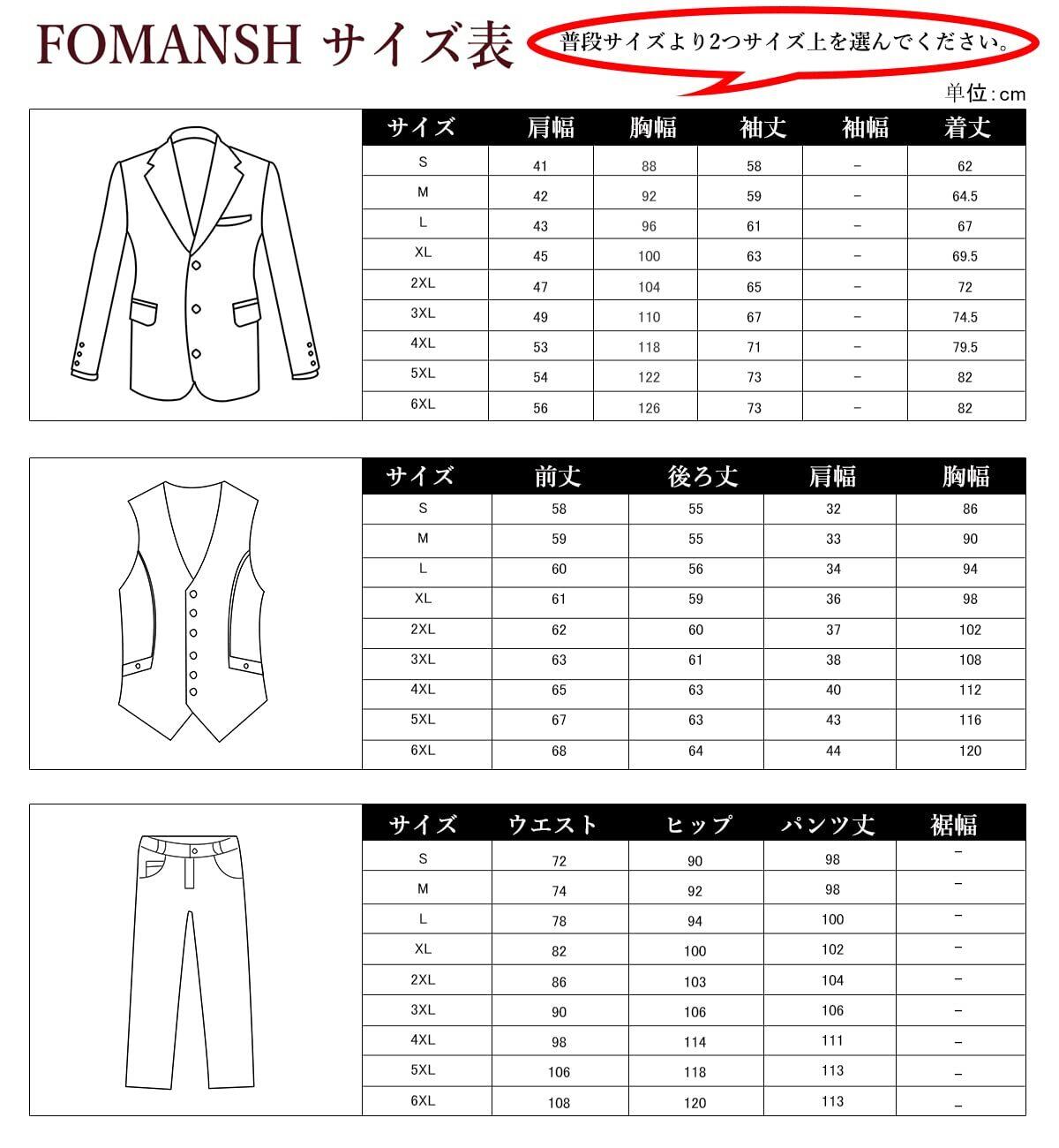 [FOMANSH] スーツ メンズ スリーピーススーツ スリム 無地 スタイリッシュ 上下