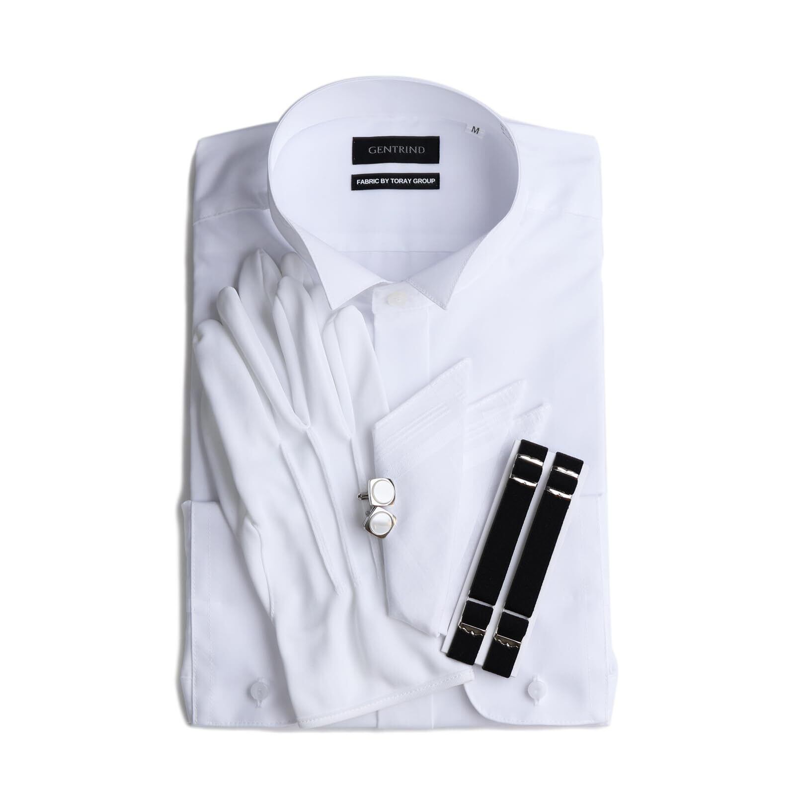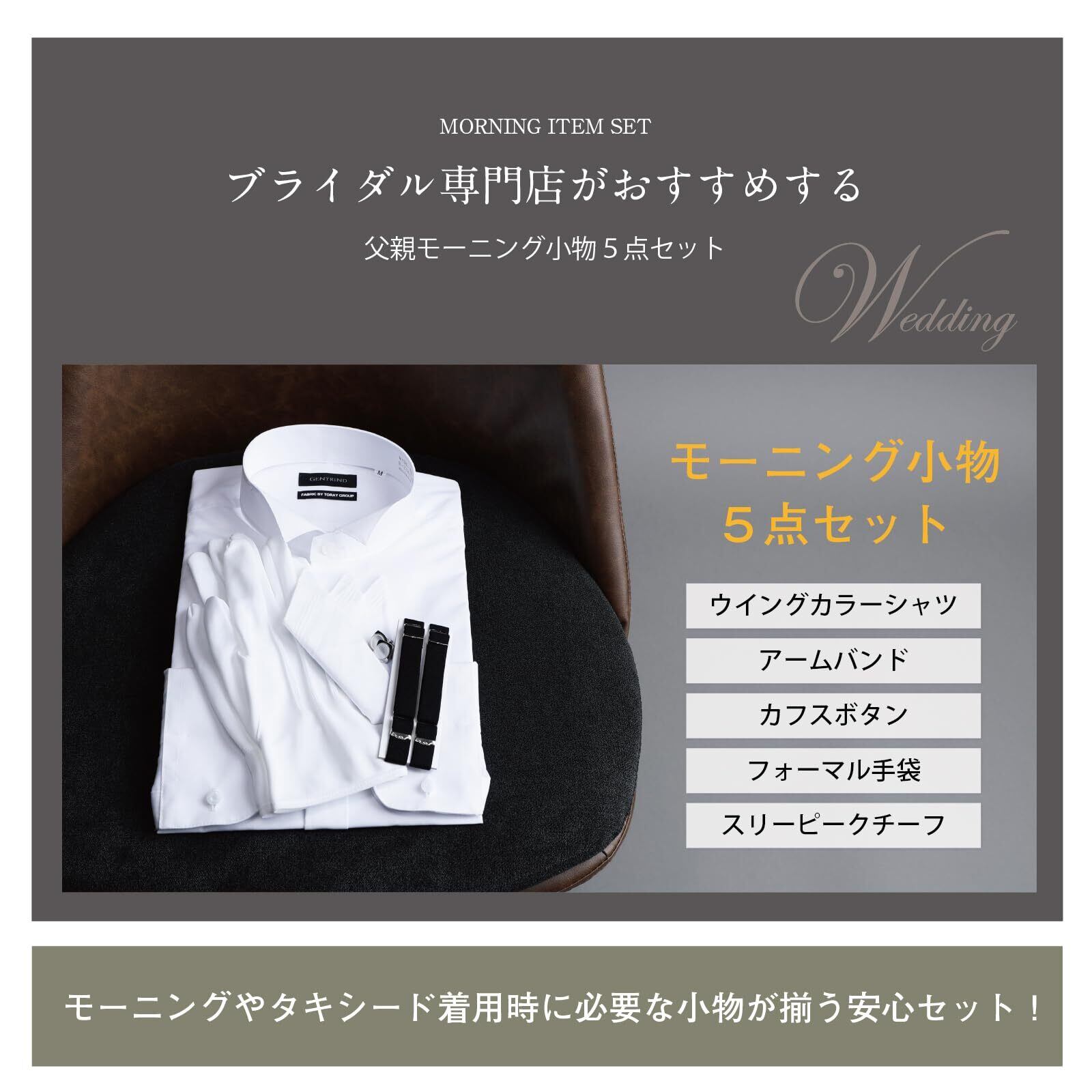 [Y&TAILOR] ウイングカラーシャツ タキシード モーニング 小物 5点 セット チーフ カフスボタン アームバンド 手袋 結婚式【R】