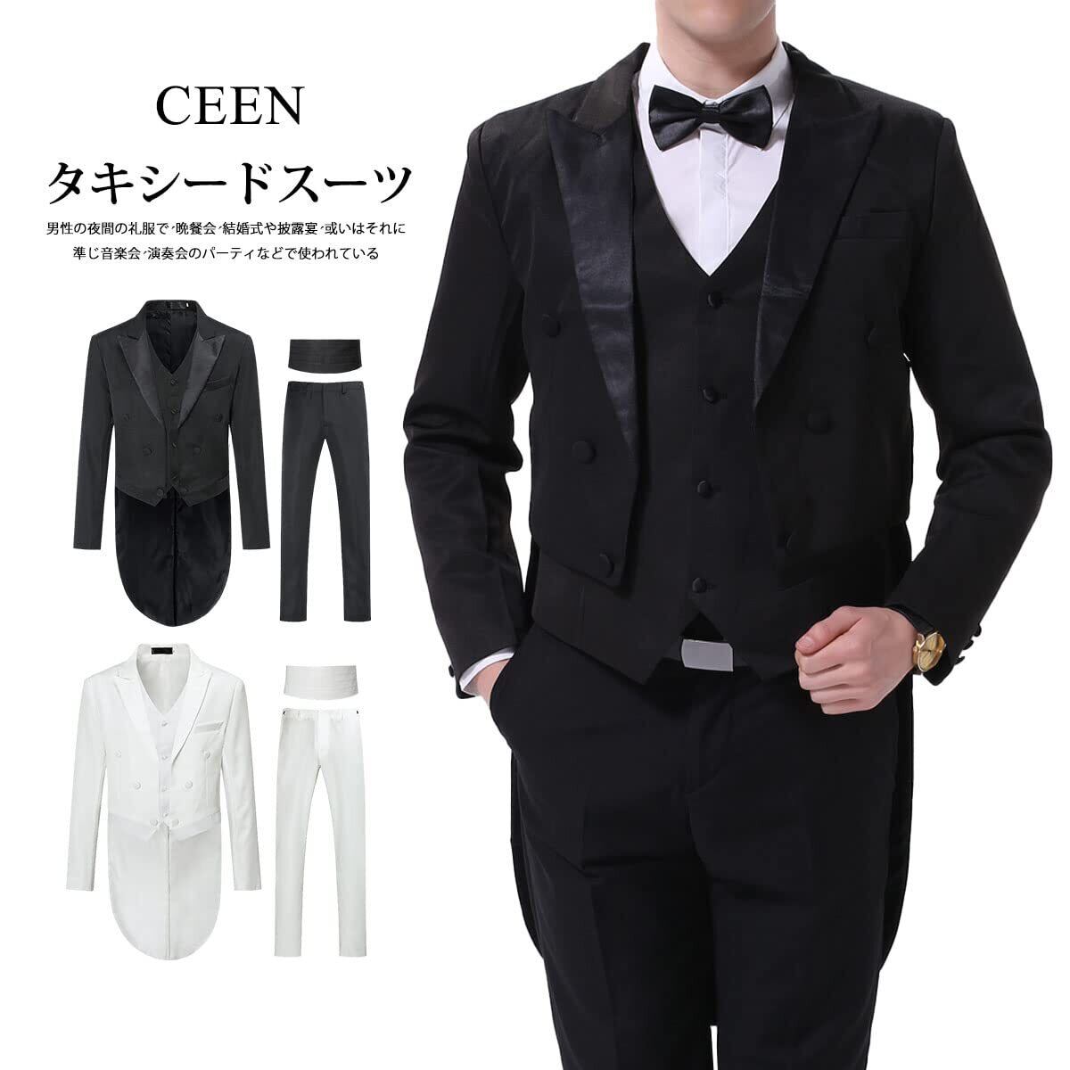 [コゥロード スタイル] [CEEN] メンズ タキシードスーツ 演奏会/音楽会 燕尾服上下セット 蝶ネクタイ付け