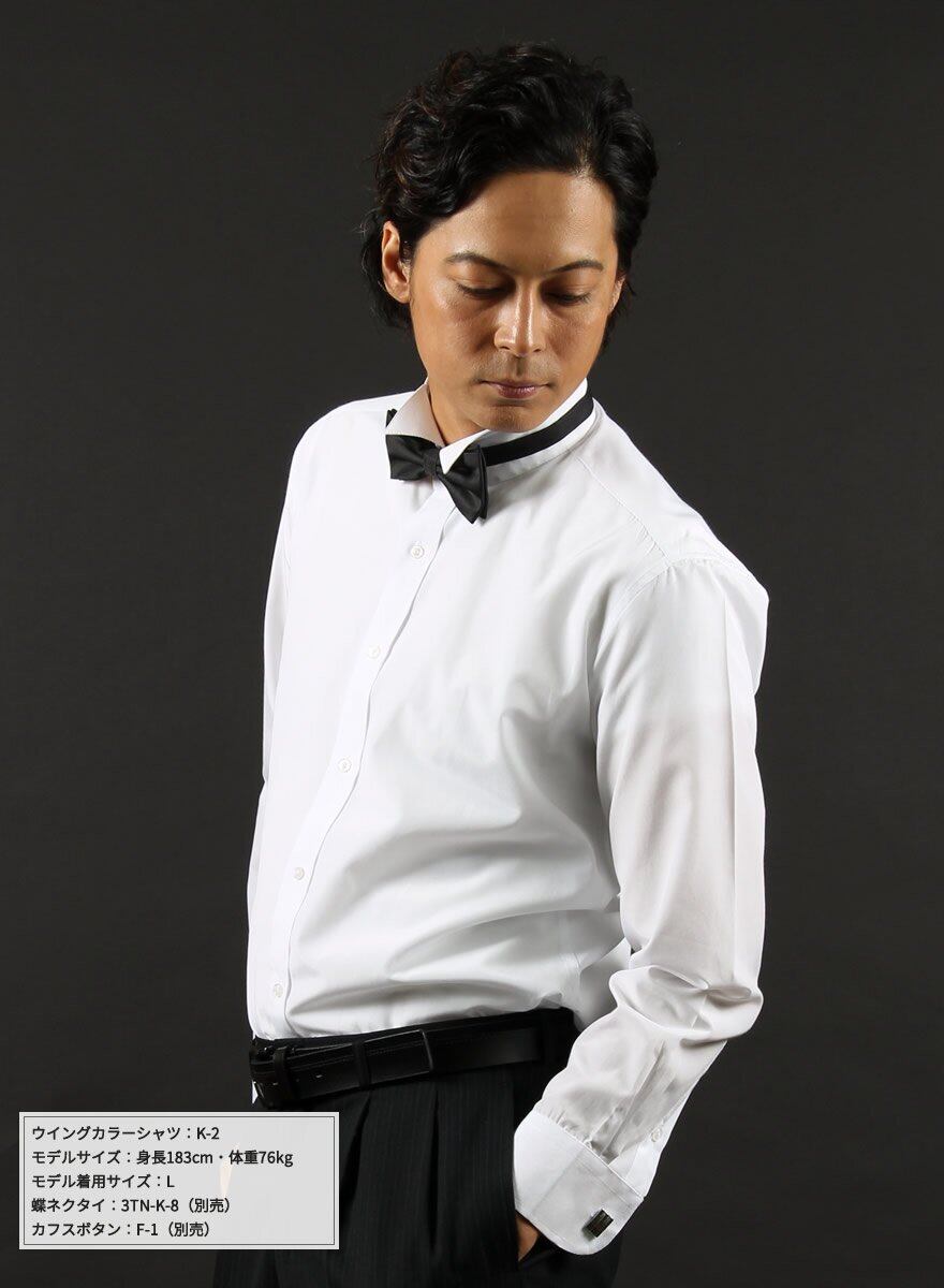 ウイングカラーシャツ 長袖 メンズ 白 K-2(シングルカフス) (ワワジャパン)WAWAJAPAN