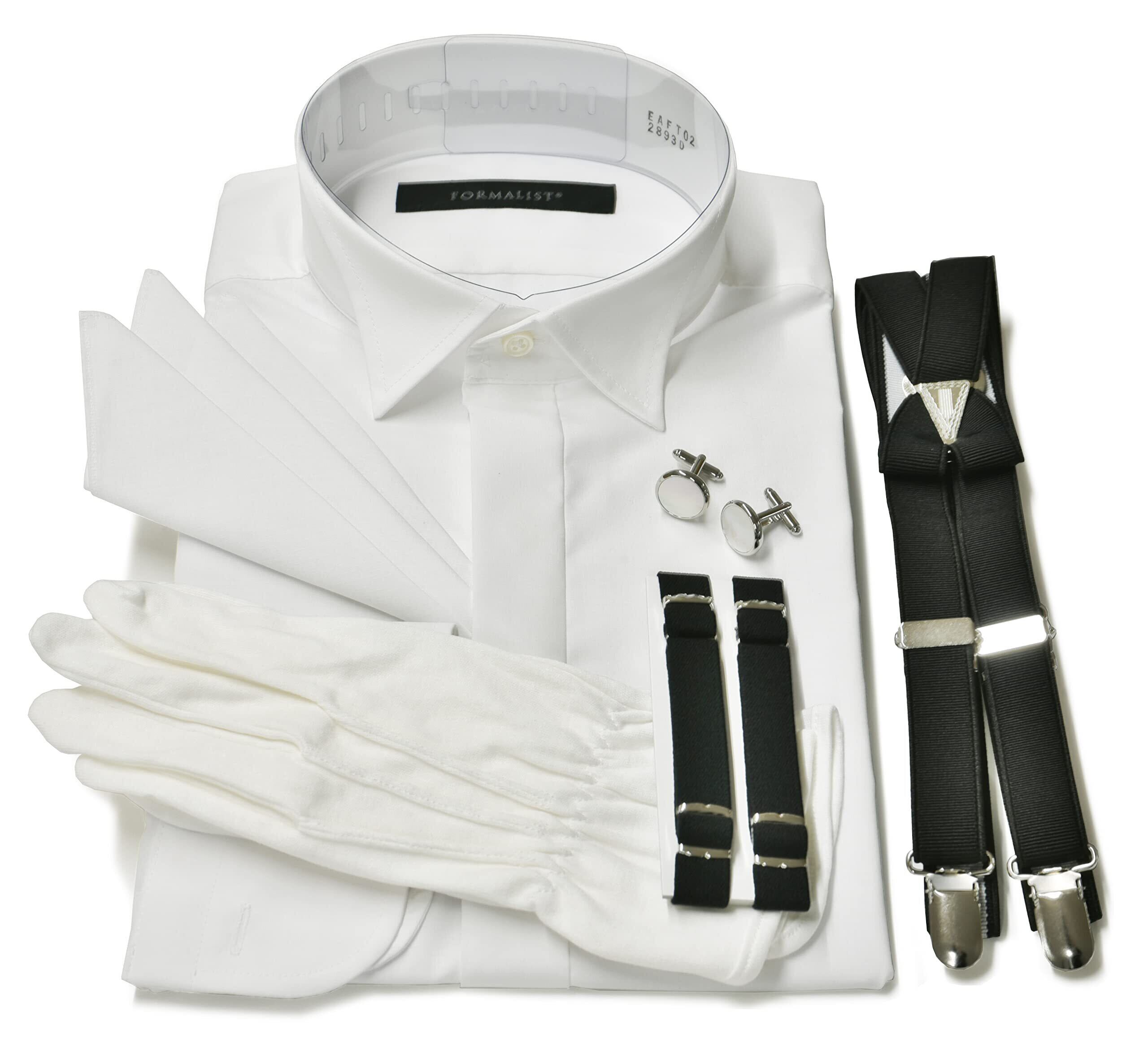 シャツ、カフスボタン、ポケットチーフ、アームバンド、サスペンダー、手袋の6点セット