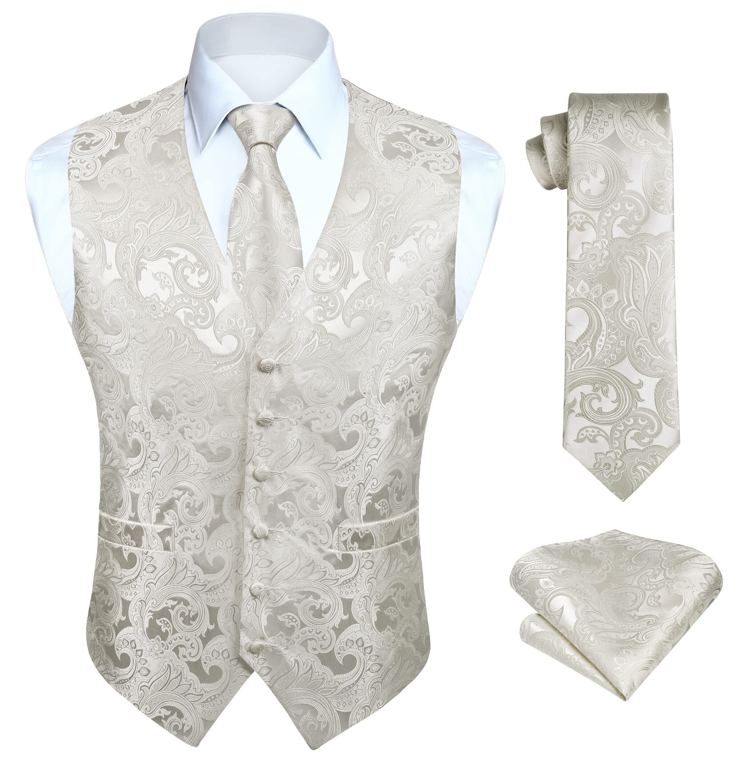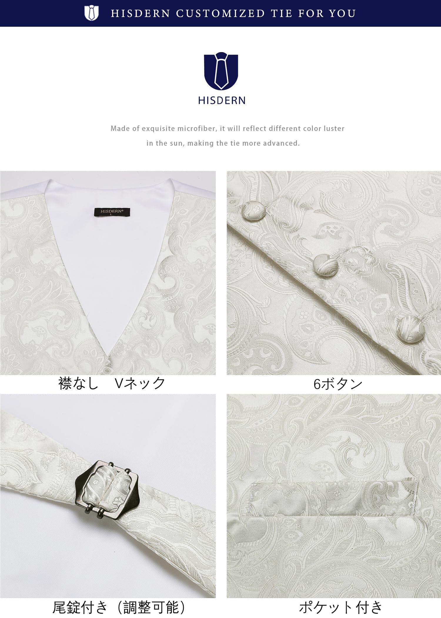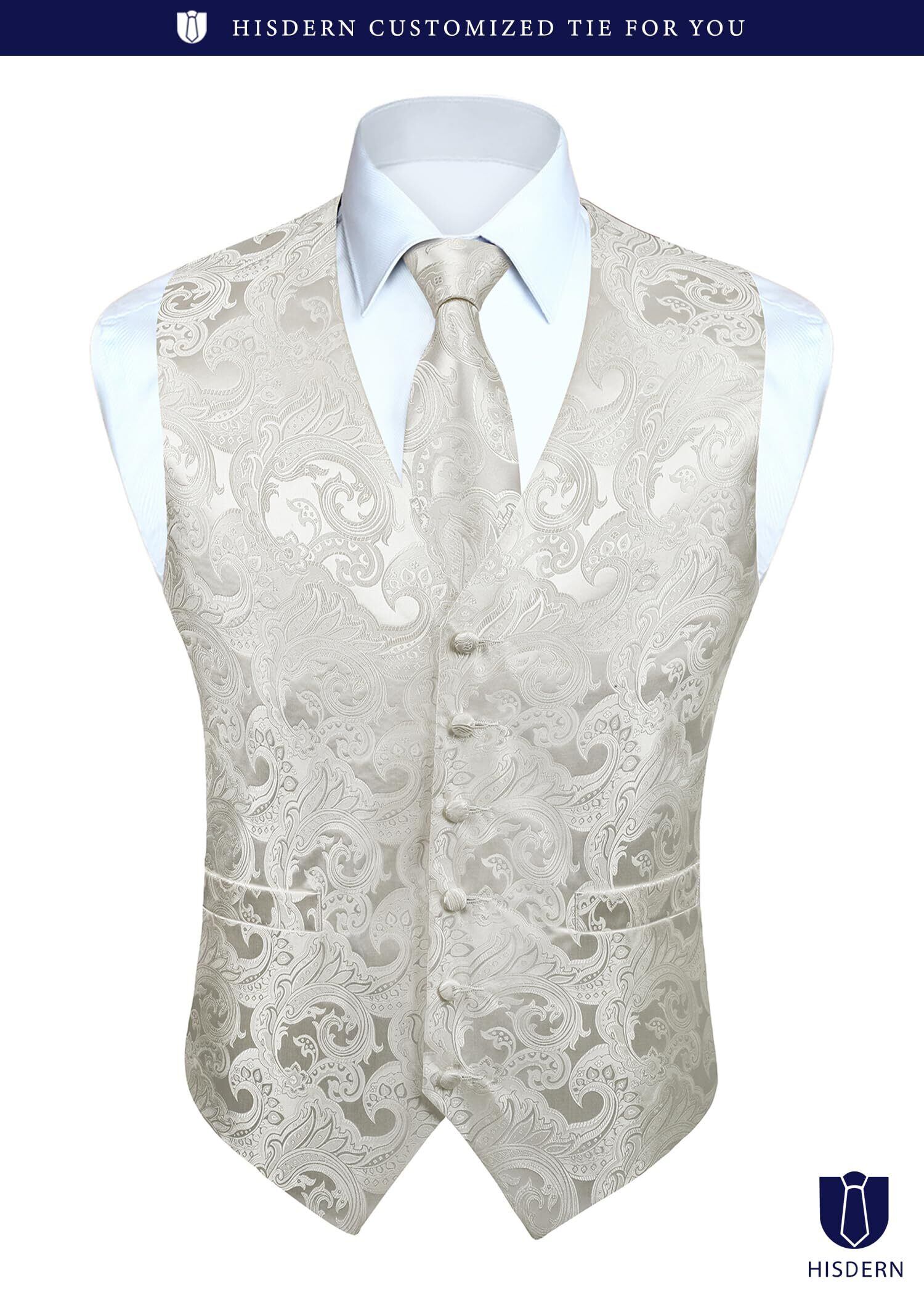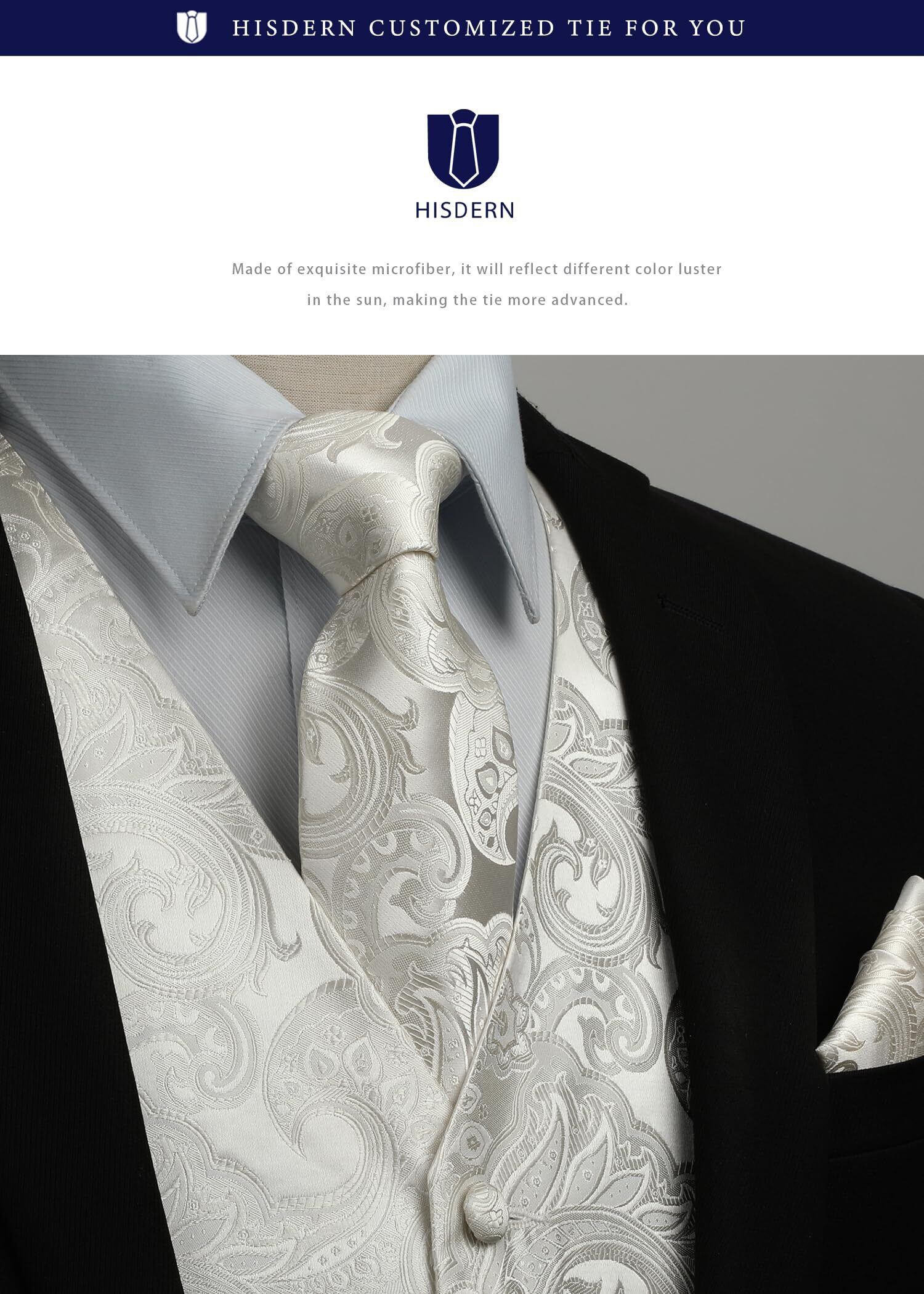 [HISDERN] V3-01 ペイズリー スーツ ベスト メンズ ネクタイ ポケットチーフ 3点 セット フォーマル 結婚式 ベスト 大きいサイズ フィット 2ポケット 紳士 礼服 大きいサイズ