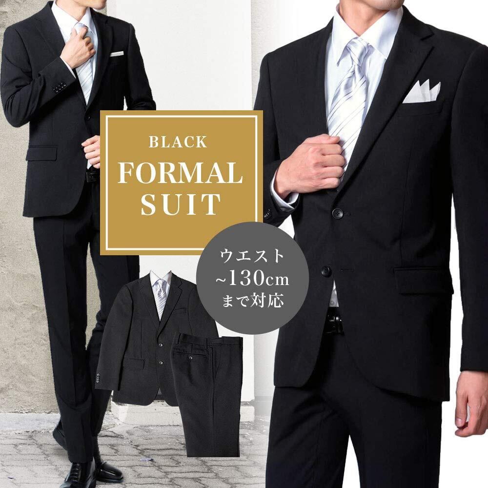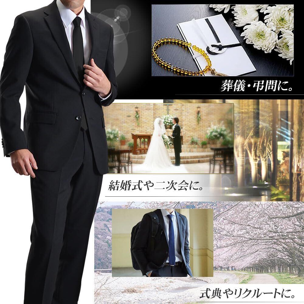 [NEW STANDARD] 礼服 メンズ フォーマルスーツ 2つボタン 喪服 オールシーズン (YA体から6Lまで) 防シワ ウォッシャブル 冠婚葬祭 (裾上げテープ付属) スーツ 黒 (E7, ブラック)