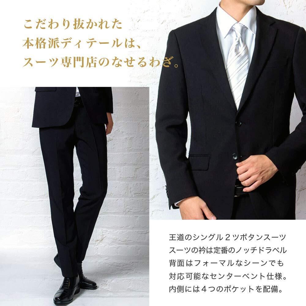 【特価セール】[NEW STANDARD] 礼服 メンズ フォーマルスーツ 2つボタン 喪服 オールシーズン (YA体から6Lまで) 防シワ ウォッシャブル 冠婚葬祭 (裾上げテープ付属) スーツ 黒 (E7, ブラック) | 無意味ステッカー