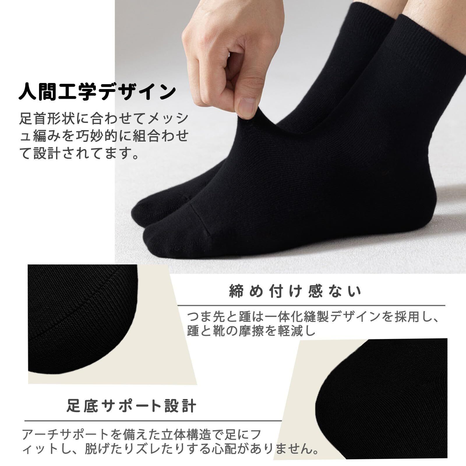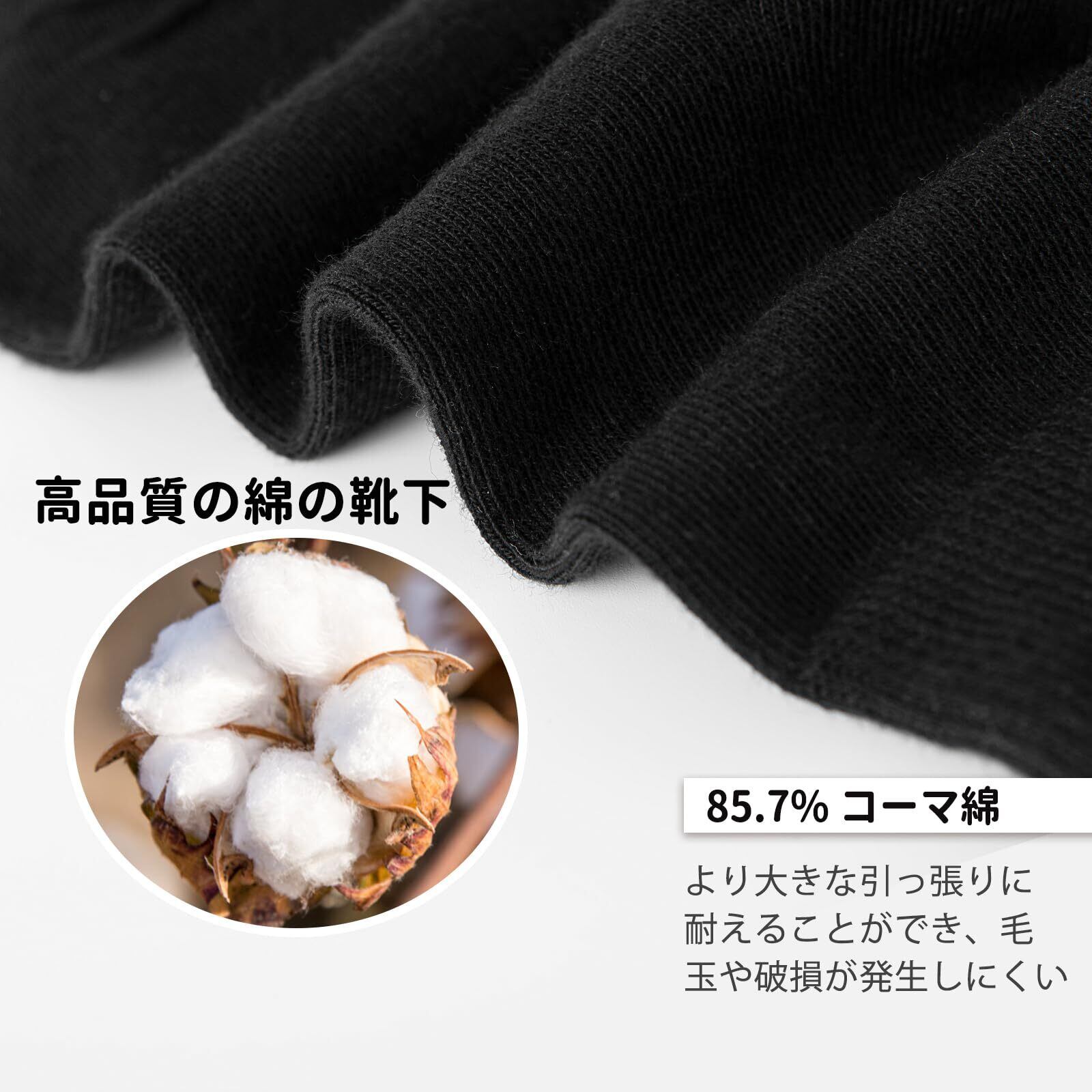 【通気性と消臭性】消臭加工と抗ピリング繊維の追加により、この高品質のコットン製メンズ 靴下は強力な消臭機能を備えています。湿気を逃がし、通気性に優れているため、足の臭いを防ぎ、足の健康を守ります。夏でも蒸れず、長時間履いても快適です。