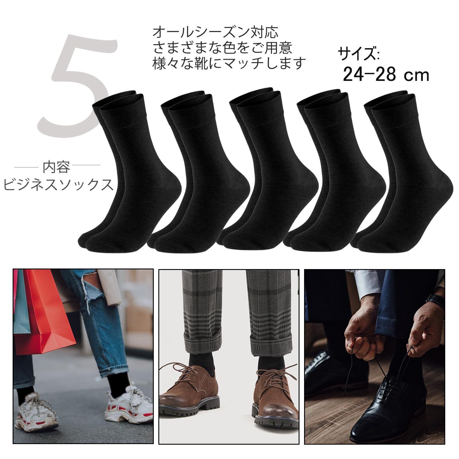 [MOSOTECH] 靴下 メンズ ビジネスソックス 5足セット吸汗消臭 通気性 四季適用 ビジネス カジュアル 24-28㎝