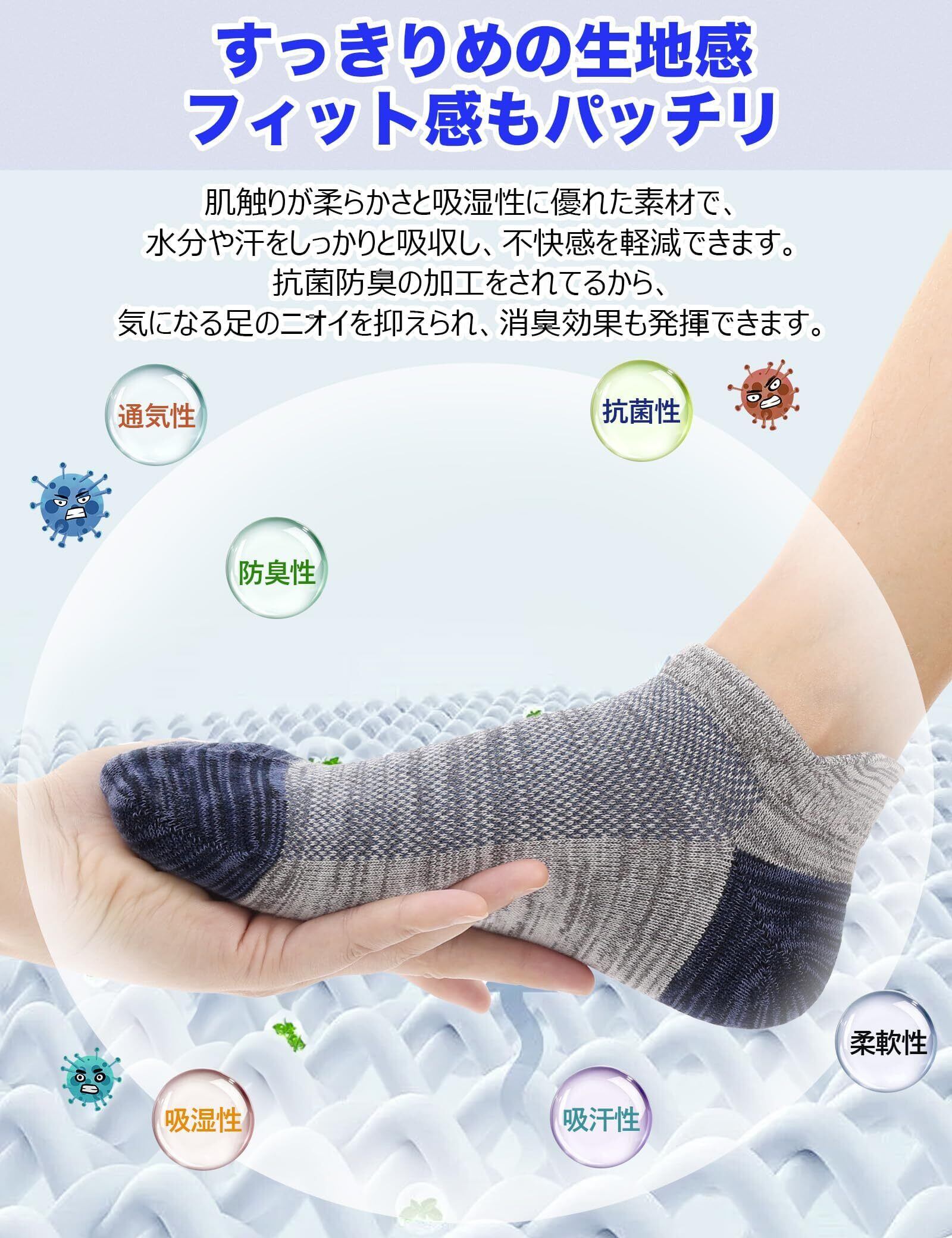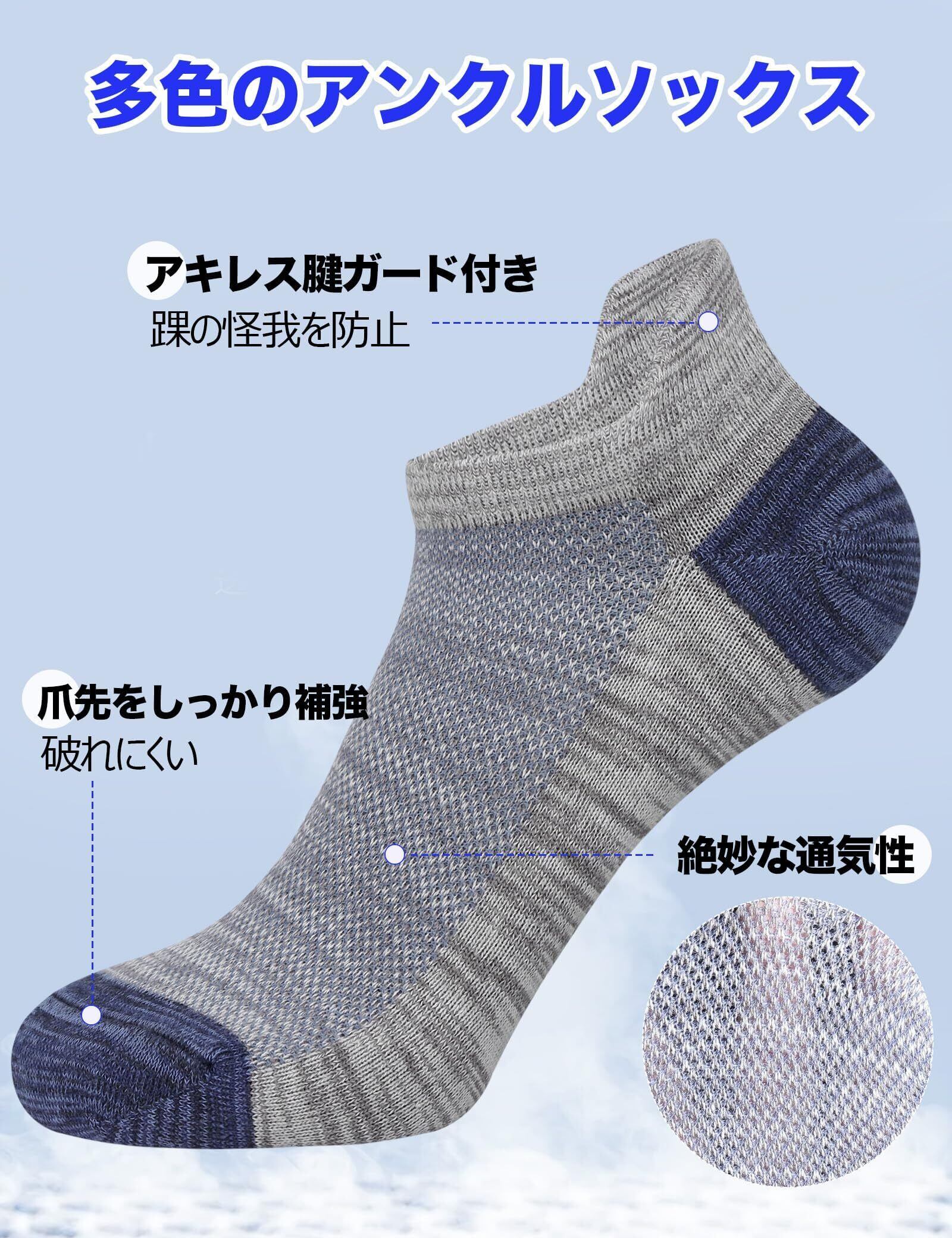 [CLOSEMATE] ソックス 靴下 メンズ くるぶしソックス 防臭吸汗 アンクルソックス 春夏用 スニーカーソックス 大きいサイズ カラフル 5足組 カジュアル スポーツ 綿 ショートソックス 男性 四季適用