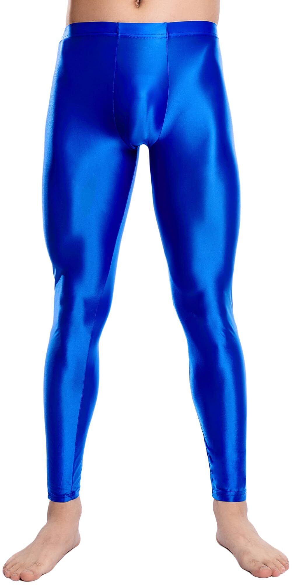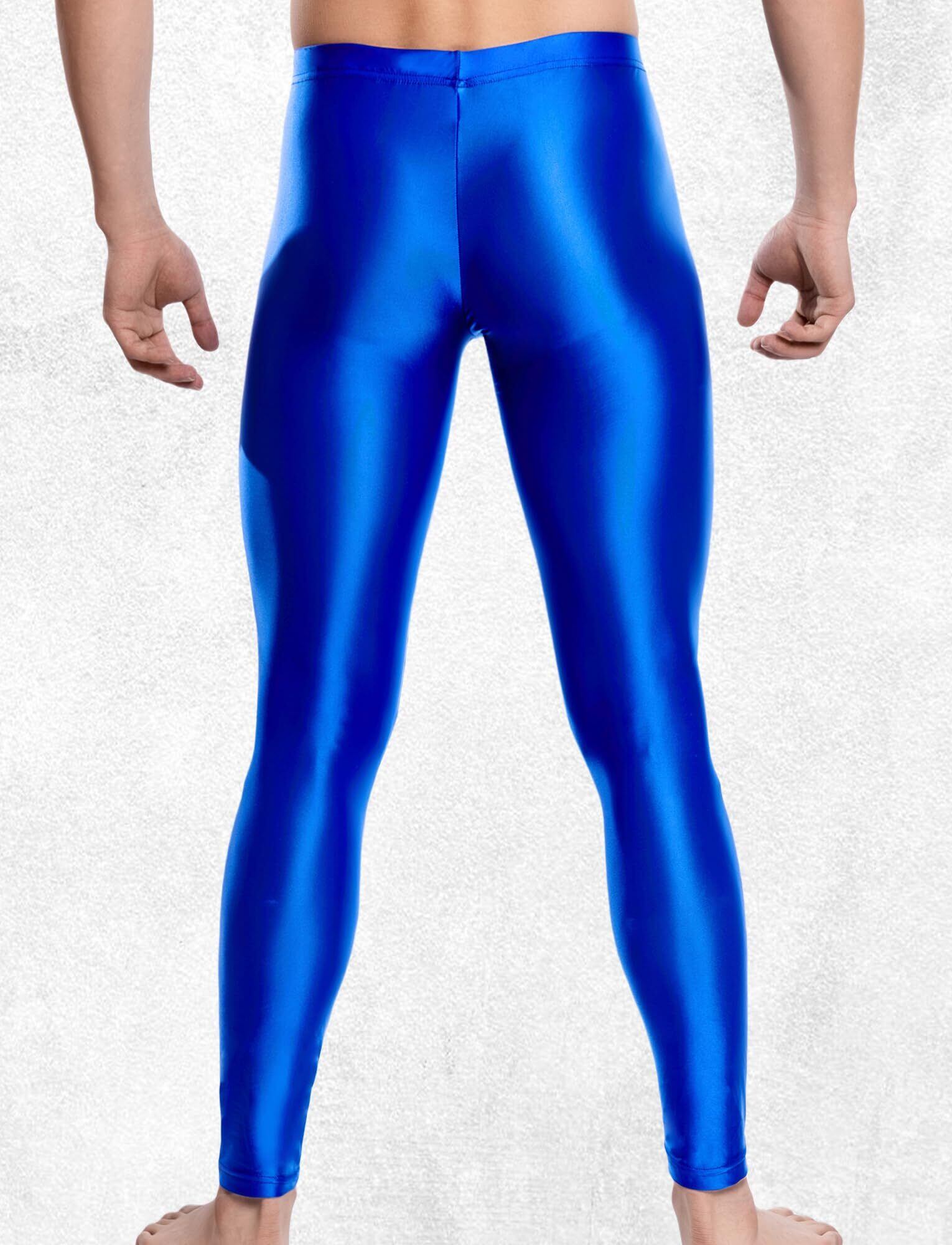 [Maeau] メンズ 光沢 レギンス ロング スパッツ 九分丈 スポーツ タイツ 透け感 パンツ 薄手 メタリック ツルツル カジュアル フィットネス トレーニング