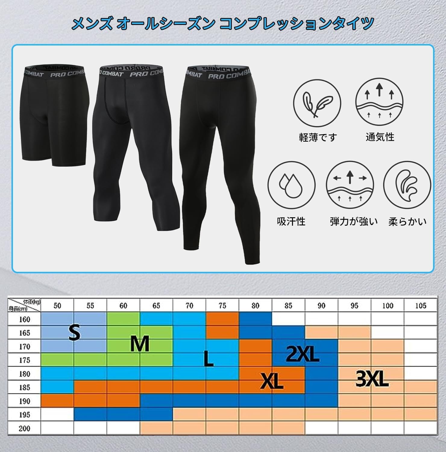 [Tersila] スポーツタイツ メンズ スパッツ [UVカット + 吸汗速乾] 9分/7分/5分丈 コンプレッションタイツ ロングタイツ スポーツ ショート トレーニングウェア レギンス