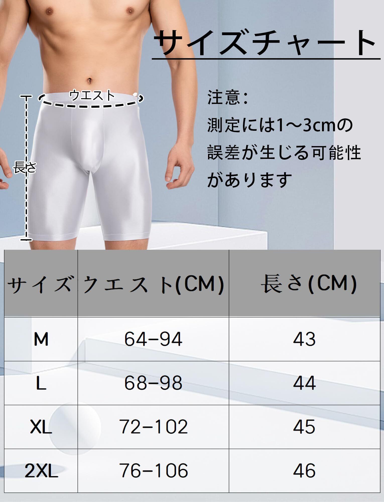 [Maeau] メンズ 光沢 レギンス 五分丈 スパッツ 膝丈 スポーツ タイツ 透け感 ショートパンツ 薄手 メタリック ツルツル カジュアル フィットネス トレーニング